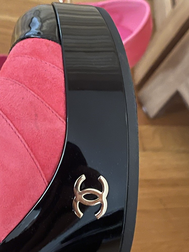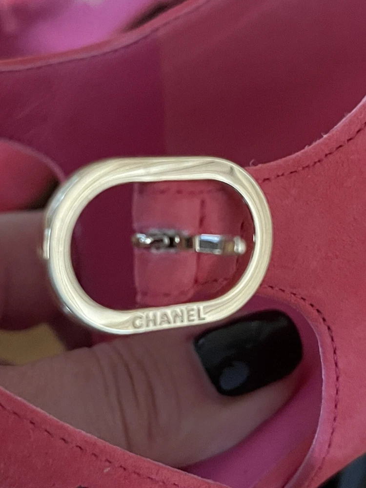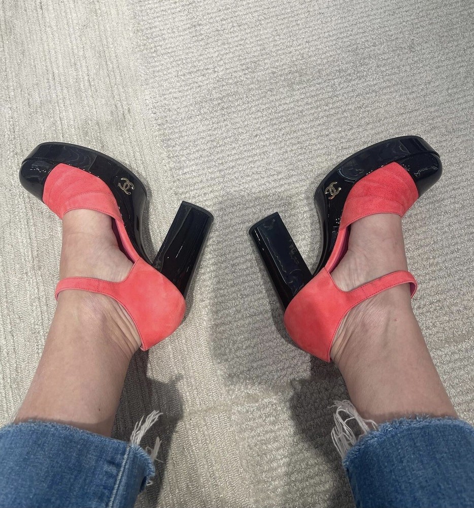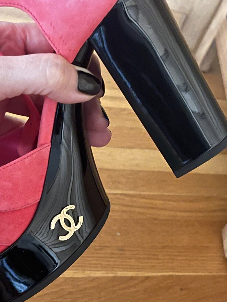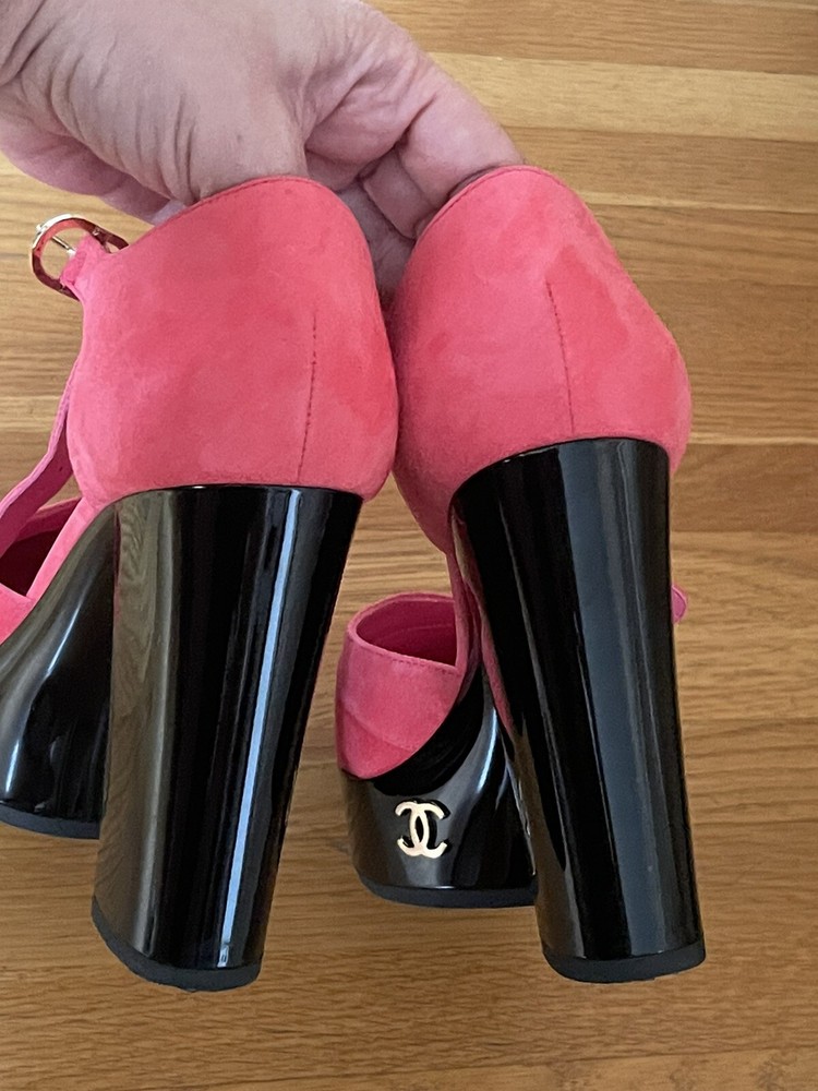 Color: Pink Type: Heel Department: Women Upper Material: Leather, Suede Insole Material: Leather Lining Material: Leather Brand: CHANEL US Shoe Size: 10 Outsole Material: Leather Style: Heels