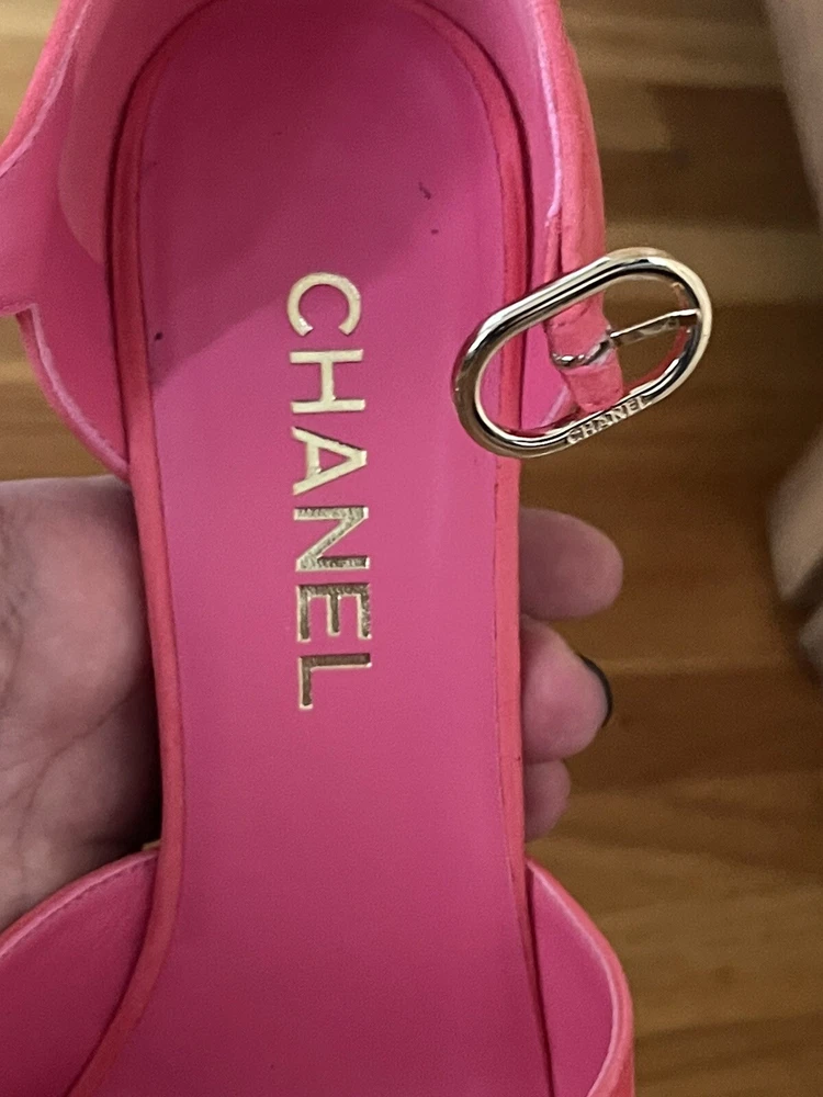 Authentic 2022 summer shoes Chanel collection Sz 40 Please check the scratch under shoes !!!!! Used few times in good used condition The shoes have some scratch under heels !!!! Check the pictures Easy to repair Welcome pick up in NYC zip code 10023 No refund No international shipping Thank you