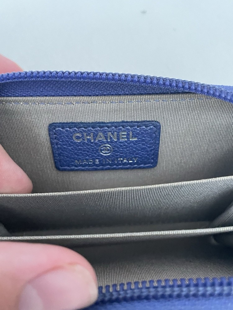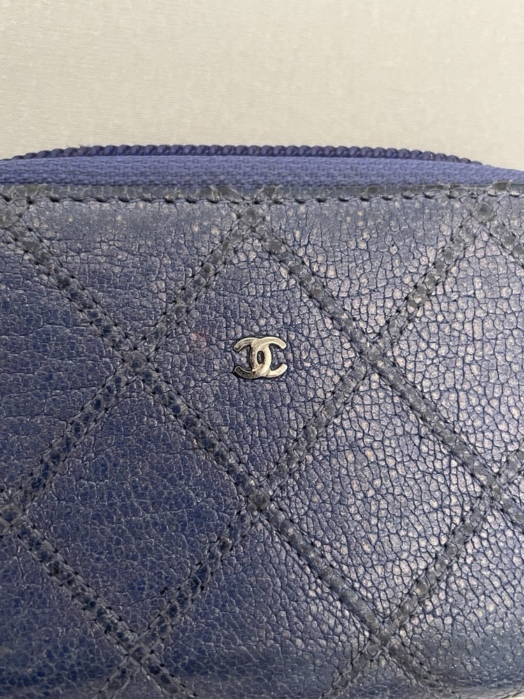 Chanel blue quilted zippy wallet fair condition