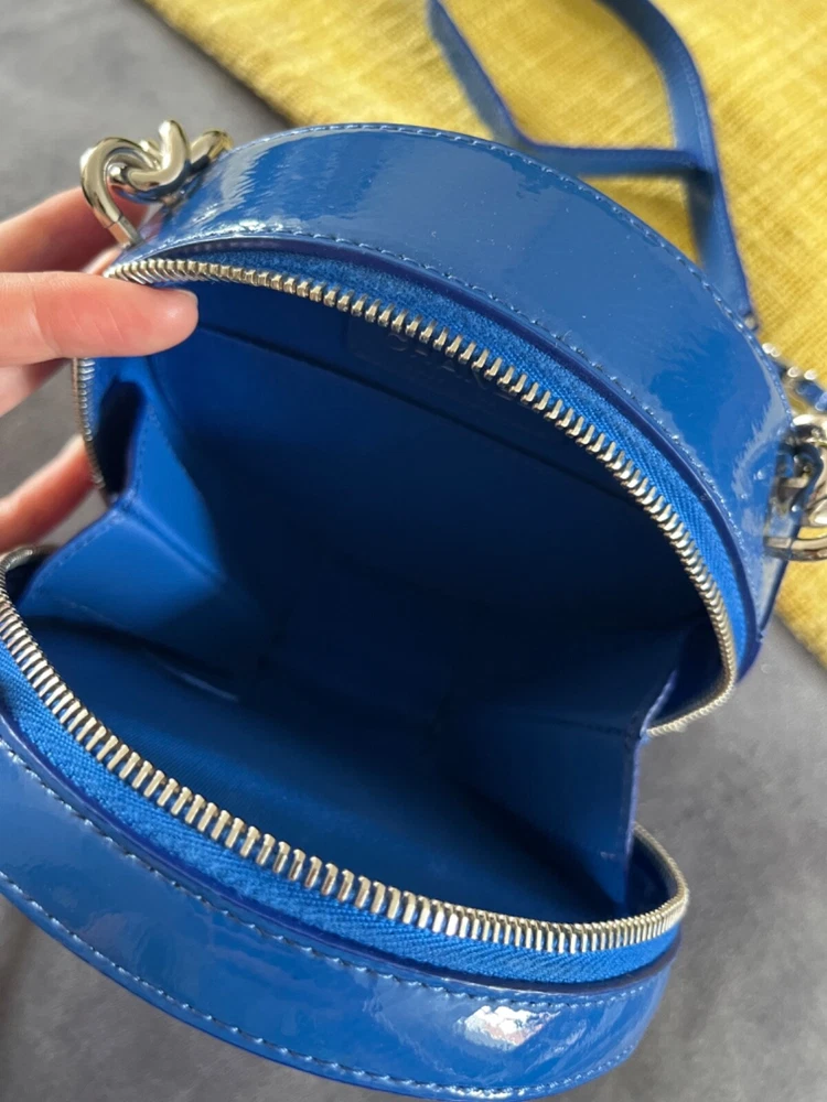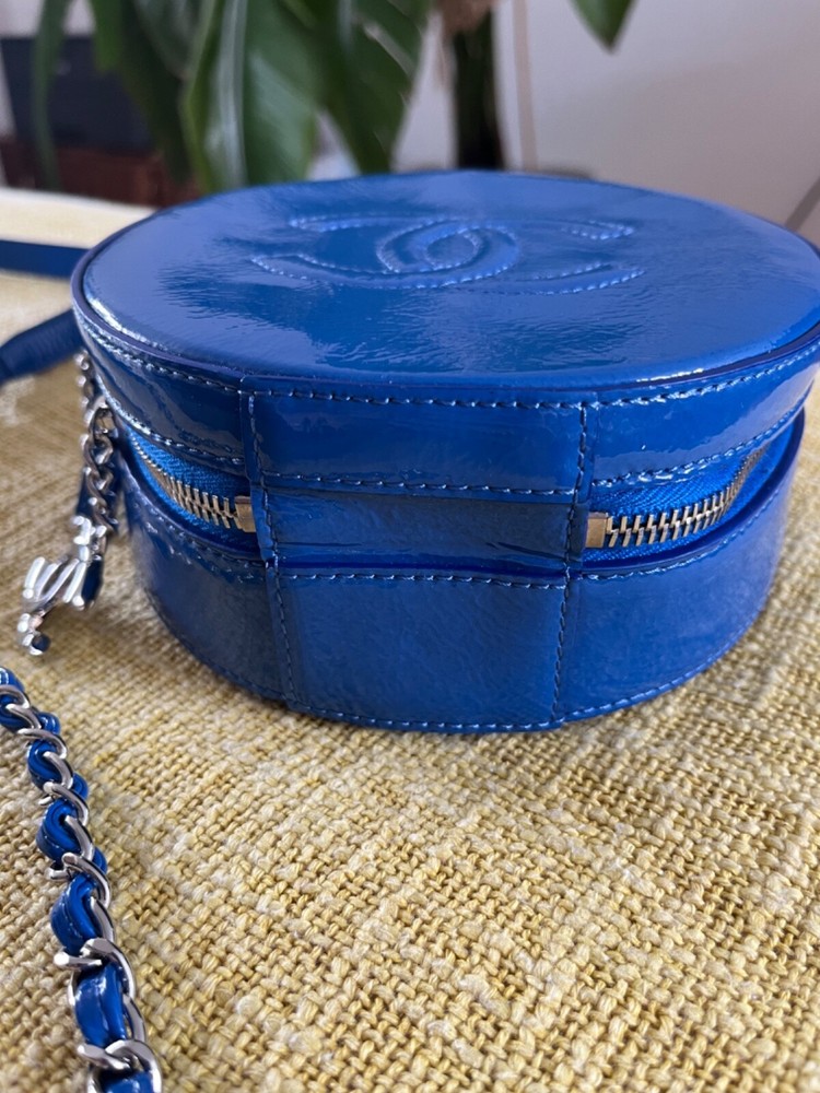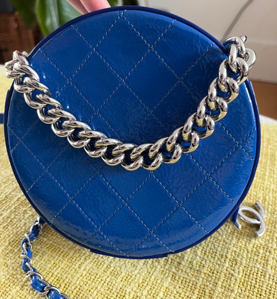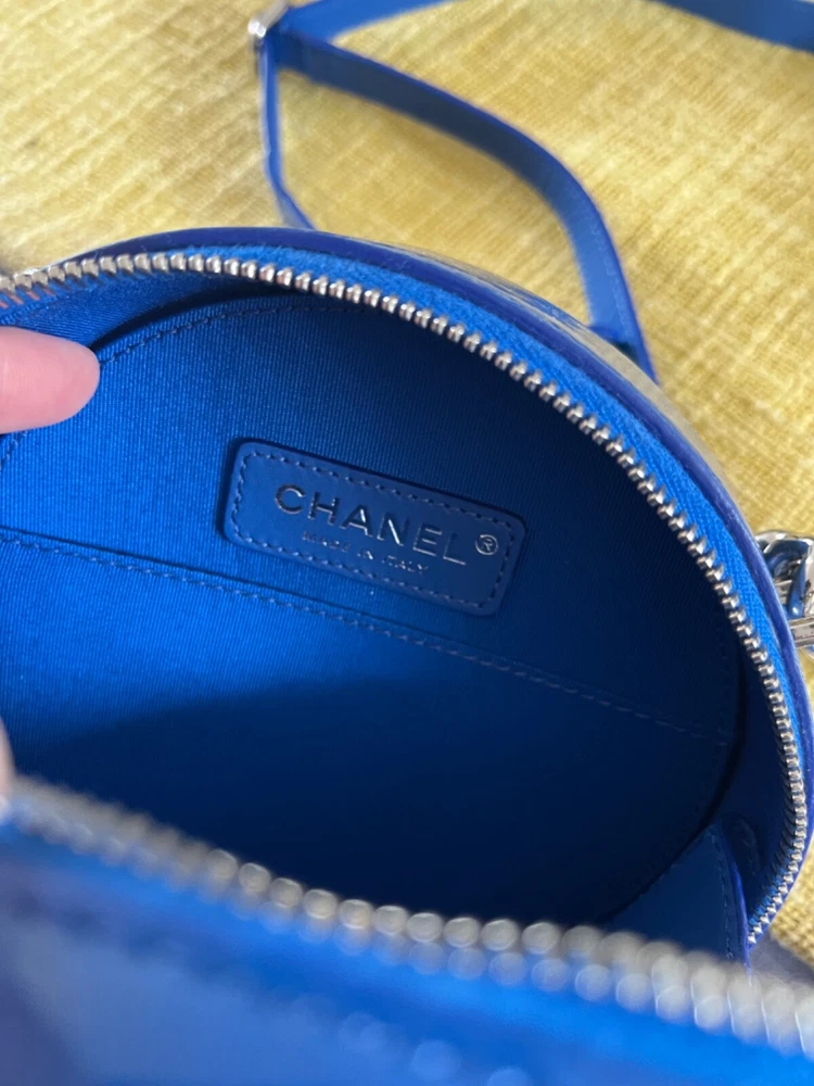 Brand new Chanel bag with Charms. Embroidered double CC on the front with top chunky metal handle chain. Ornate zipper details with CC logos and crystal owl charms. Detachable and adjustable crossbody/shoulder strap! Comes with dust bag only. Dimensions: 6.25” in diameter, 2.5” in depth/width Strap length: 21” - 23.5”