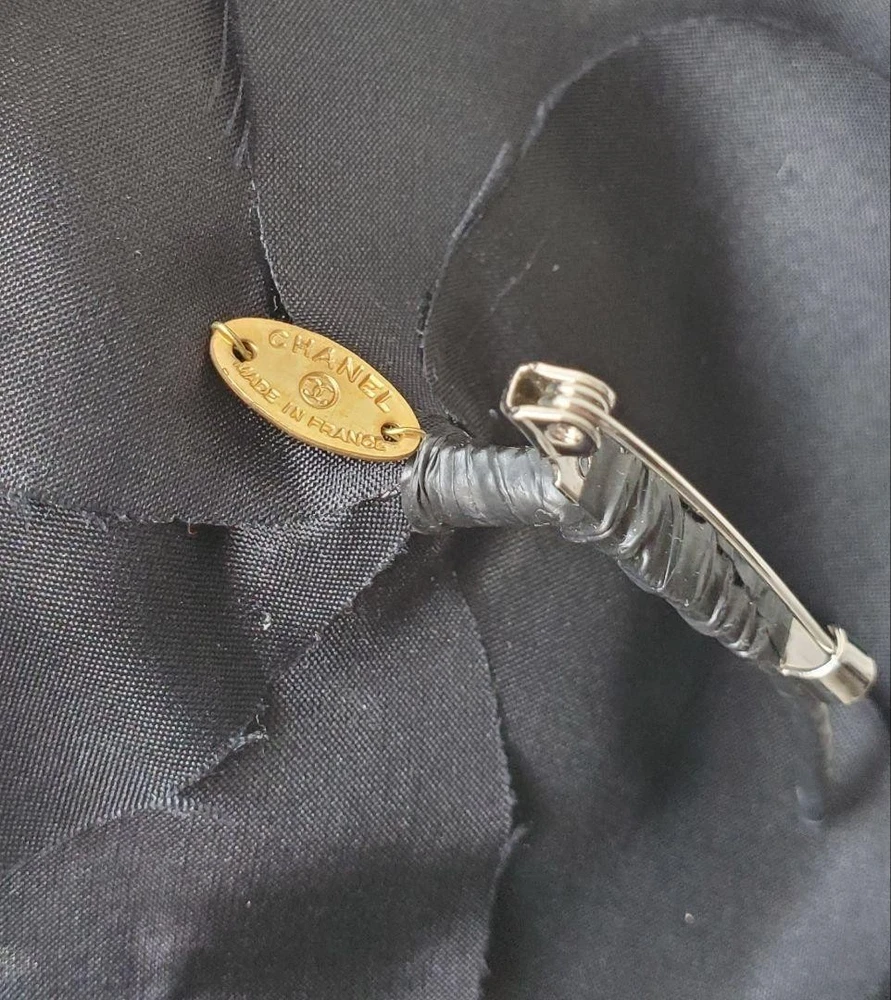 This stunning Chanel camellia brooch is a timeless piece that adds instant elegance to any outfit. The black silk and satin petals have a luxurious sheen, and the vintage condition gives it character. At 10.5cm, it makes a statement without being overwhelming—perfect for jackets, scarves, or even as a hair accessory. Love how versatile it is, dressing up both casual and formal looks. The craftsmanship is impeccable, just what you'd expect from Chanel. A true collector's piece that feels special every time I wear it!