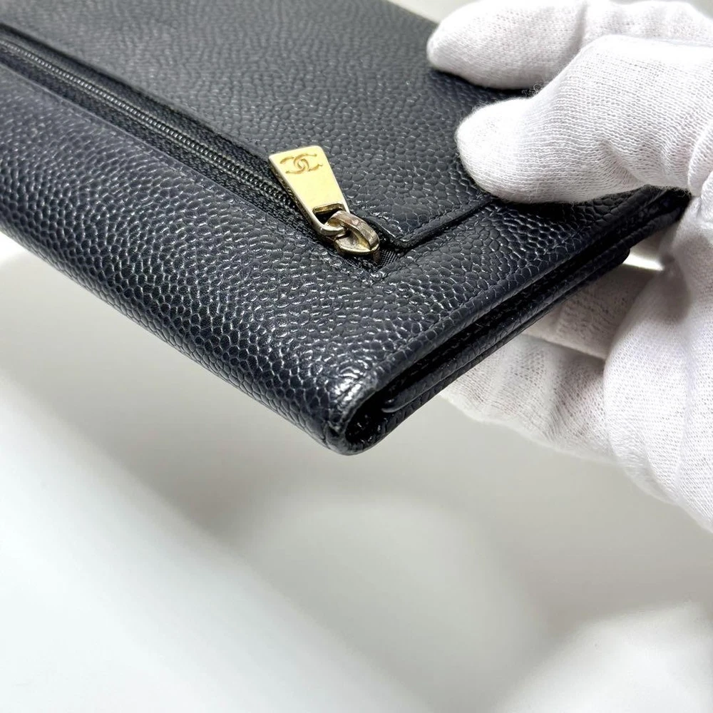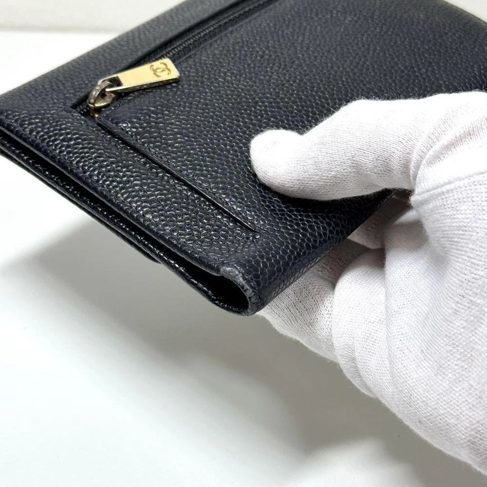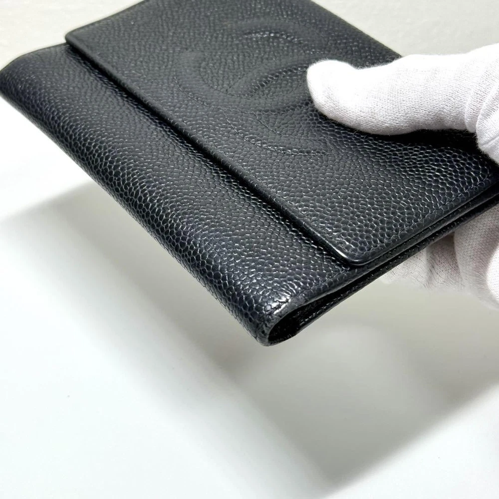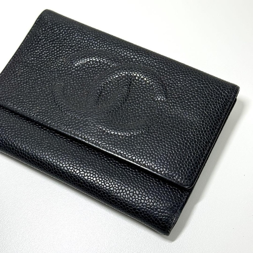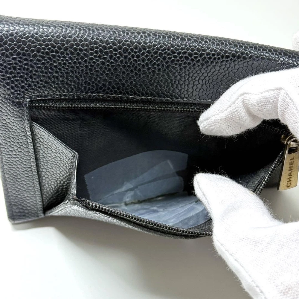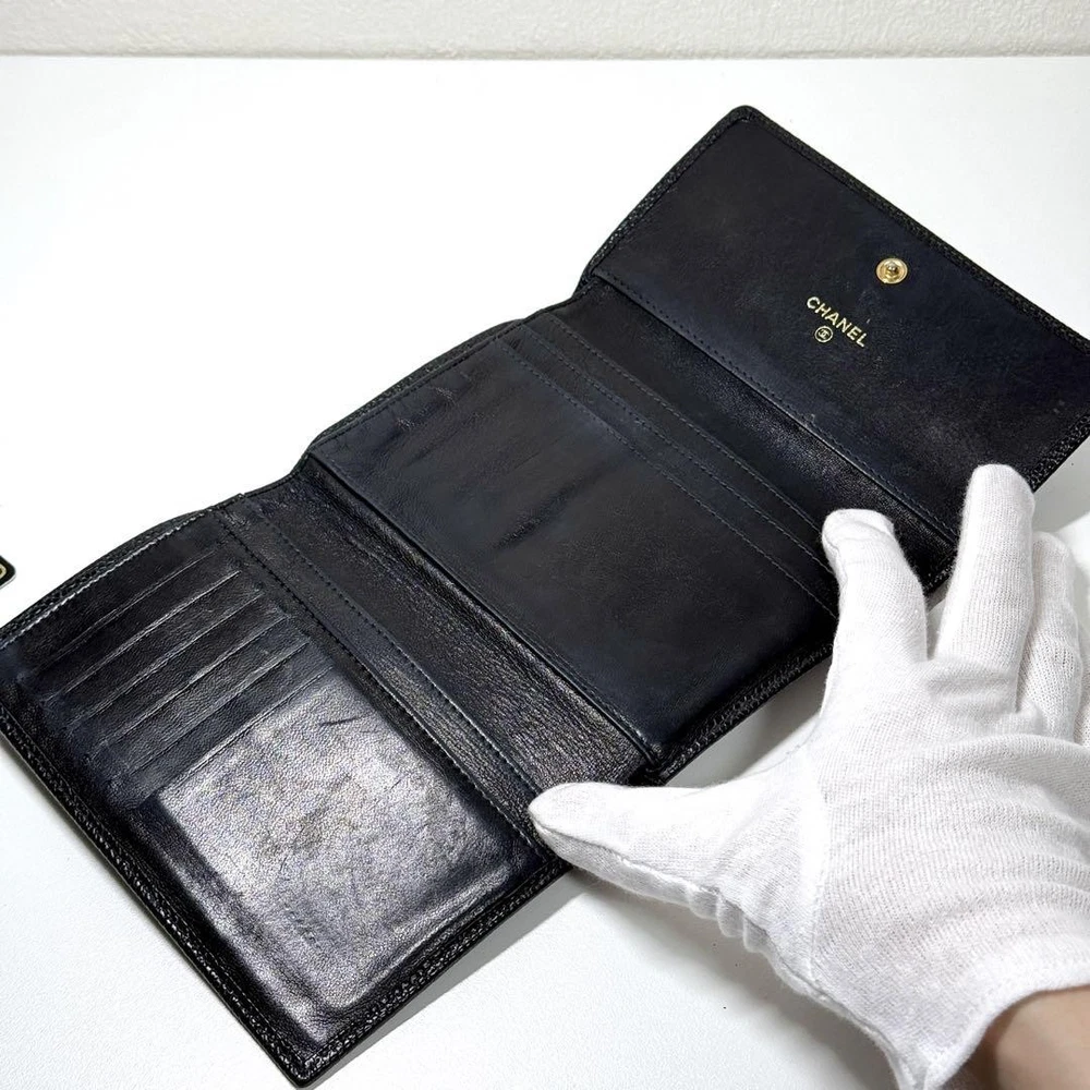 Chanel Vintage Tri-Fold Wallet Caviar Skin Black Used Authentic Key Features - Brand: CHANEL - Product: Vintage Tri-fold Wallet - Model: Decca Cocco, Caviar Skin, Black - Condition: B (used with signs of wear) - Features: - Material: Caviar leather - Color: Black - Size: approximately 5.7 x 4.3 x 0.6 inches (14.5 x 11 x 1.5 cm) - Serial seal attached - Notes: - Certified authentic from a reputable antique market affiliated with AACD - Comes with a guarantee card - No accessories are included unless noted in the title or product description - Please ask questions before purchasing; we accept returns if there are issues after delivery - Overall, a rare vintage CHANEL wallet with authentic certification, showing some signs of use. Specifications Brand Chanel Country Japan Type Wallet Color Black Style Vintage Features Fold Vintage Vintage Product Description Item Title Chanel Vintage Tri-Fold Wallet Caviar Skin Big Coco Black Payment Supports managed payments Please pay within 5 days after auction is finished. About Us We are located in Japan. It's our pleasure to make you happy by proposing our recommend item. If you have any questions or request about items, please feel free to ask us. International Buyers - Please Note: -Import duties, taxes, and charges are not included in the item price or shipping charges. These charges are the buyer's responsibility. -Please check with your country's customs office to determine what these additional costs will be prior to bidding/buying. -These charges are normally collected by the delivering freight (shipping) company or when you pick the item up - do not confuse them for additional shipping charges. -We do not mark merchandise values below value or mark items as - gifts - The US and International government regulations prohibit such behavior. Thank you for your understanding.