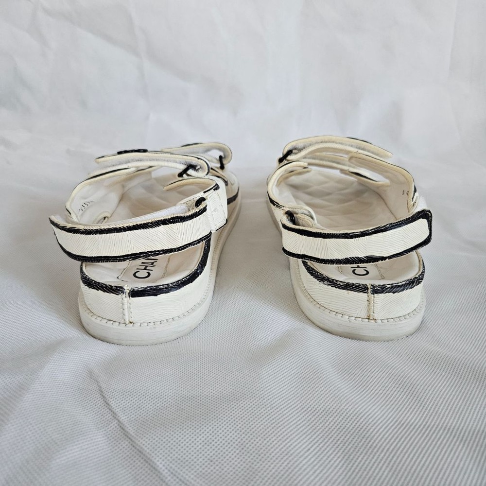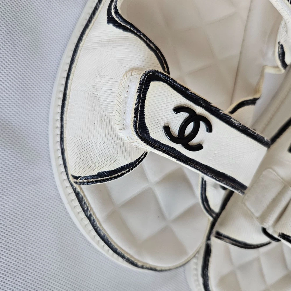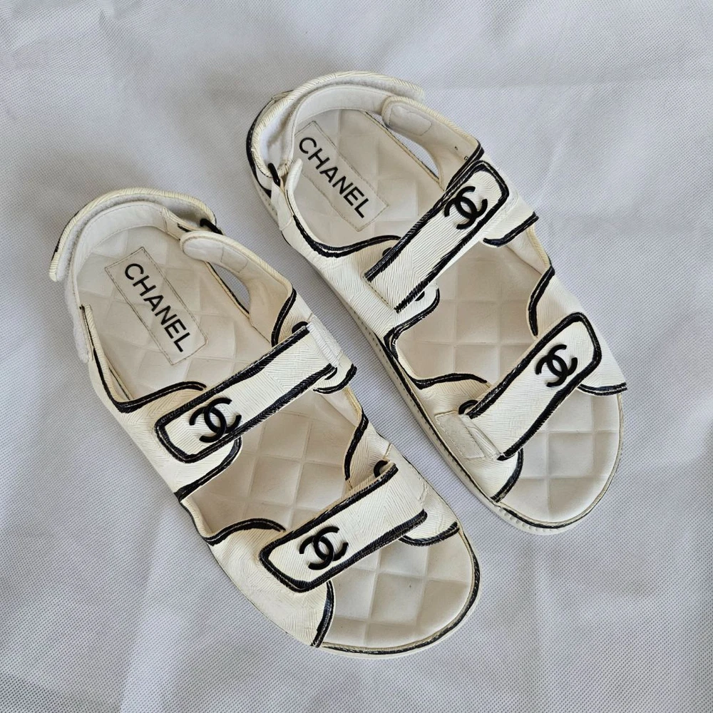 bopf Visit thebusinessofprelovedfashion store to see all the catalogue ABOUT US CUSTOMER FEEDBACK CONTACT US Chanel White Graphic Dad Sandals, 41.5 check_circle Handling Time: 4 days check_circle Additional custom duties may apply check_circle 100% Authentic Chanel White black printed Dad Sandals from the Cruise 2021/22 collection Attributes Material : Leather Color : White and Black Size: 41.5 Condition Desc.: Very good; outsole has been scuffed Inclusions : Box About This Item Style: Dad Sandals Department: women Upper Material: Leather Brand: Chanel US Shoe Size: 41.5 Color: White and Black How we list items 1. METICULOUS INHOUSE AUTHENTICATION PROCESS Our in-house luxury consignment experts offer a combined experience of over 8 years in the fashion resale industry enabling them to carefully inspect all items listed online to ensure they are authentic 2. VERIFY AUTHENTICITY USING ENTRUPY AI TOOL We use Entrupy: The world's first and only on-demand authentication solution for high-value goods as an additional layer of authenticity ventication. 3. THIRD PARTY PROFESSIONAL AUTHENTICATION SERVICES We use Entrupy: The world's first and only on-demand authentication solution for high-value goods as an additional layer of authenticity ventication. Customers with frequent return orders will incur a restocking fee of 30$ per order. This policy helps cover administrative costs es thoughtful purchases. About the Seller Shipping Policy Description Payment Policy Description Return Policy Description Welcome to The Business of Preloved Fashion (BOPF) – your trusted source for authentic, preloved luxury fashion. Founded in Dubai in 2021 by Hadiza Ibekwe, who brings over 10 years of experience in luxury resale, BOPF is committed to making luxury fashion more accessible and sustainable. Why Shop With Us? Authenticity Guaranteed: Every item is carefully inspected and authenticated by our experts. New Treasures Weekly: Our collection is updated weekly with carefully curated preloved designer pieces, including preloved bags, clothing, shoes , accessories and jewelry. Luxury for Less: Find high-end designer items at a fraction of their original prices. Quick Shipping: Enjoy fast, reliable shipping with every purchase. Sustainable Fashion: Join us in promoting a more sustainable fashion future by choosing preloved. Have questions? Reach out via eBay messaging – we're readily available! • We will use DHL courier for safe and fast delivery. • Import duties, taxes and charges are the buyer's responsibility. Please check with your country's customs office to determine what these additional costs will be prior to bidding or buying. • We accept only online payment method. • We accept payment by PayPal and Credit / Debit cards entered on eBay only. Customers with frequent return orders will incur a restocking fee of 30$ per order. This policy helps cover administrative costs and encourage thoughtful purchases.