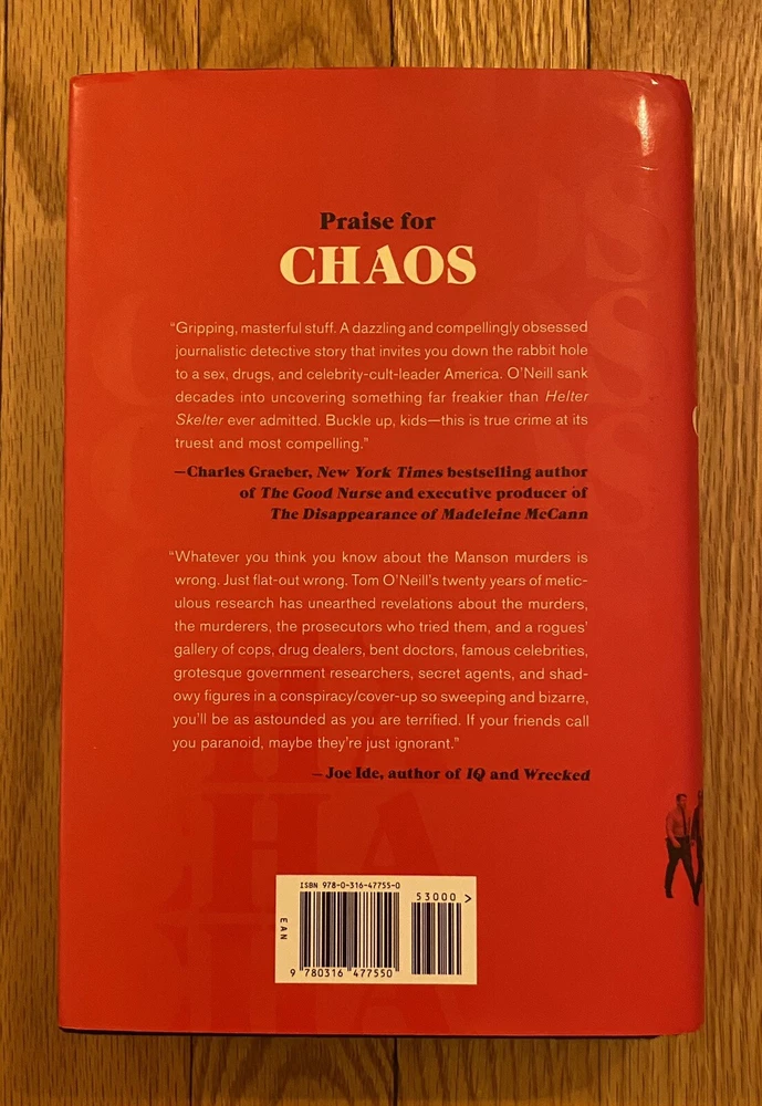 First edition hardcover version of Tom O’Neill’s ‘Chaos: Charles Manson, the CIA, and the Secret History of the Sixties. Book is in Like New shape with little to no visible shelving wear. See pictures. If you have any additional questions, please message me prior to purchase.