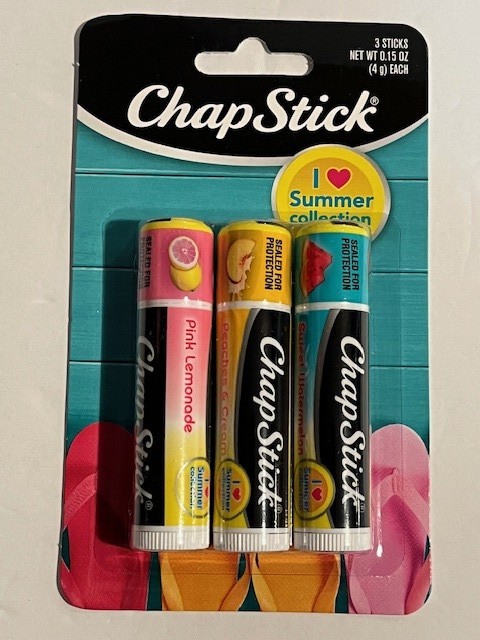 Chapstick Limited Edition 3 packs available. The following 3 packs are available. Each individual container is .15 oz You're My Hero Collection: Powerful Peach, Amazing Mint, Watermelon Wonder S'Mores Collection: Graham Cracker, Marshmallow, Milk Chocolate Tropical Paradise Collection: Mango, Key Lime, Aloha Coconut I Love Summer Collection: Pink Lemonade, Sweet Watermelon, Peaches and Cream Spa Collection: Mint Tea, Rose Water, Almond Oil Pumpkin Pie: 3 Pumpkin Pie Flavors Coffee Collection: Caramel Macchiato, Mint Mocha, Vanilla Latte Vacation Getaway: Snow Cone, Limeade, Cotton candy Vanilla Favorites Collection: Vanilla Mint, Vanilla Bean Ice Cream, Vanilla Cupcake Candy Cane Collection: 3 Candy Cane flavors Cake Batter Collection: 3 Cake Batter Flavors Ice Cream Classics: Fudge Sundae, Mint Chocolate Chip, Cookies and Cream Mocktail Collection: Mojito, Strawberry Daiquiri, Pina Colada Superfood Collection: Dragon fruit, Blueberry, Clover honey Christmas Collection: Candy Cane, Hot Chocolate, Sugar Cookie Fall Collection: Apple Pie, Salted Caramel, Vanilla Latte Sips & Snuggles Collection: Holiday Nog, Pomegranate Spritz, Hot Chocolate Toasty Treats Collection: Gingerbread Cookie, Spiced Apple Crumble, Warm Cinnamon Roll All are sold separate. You can choose which flavor you want. price is for one package