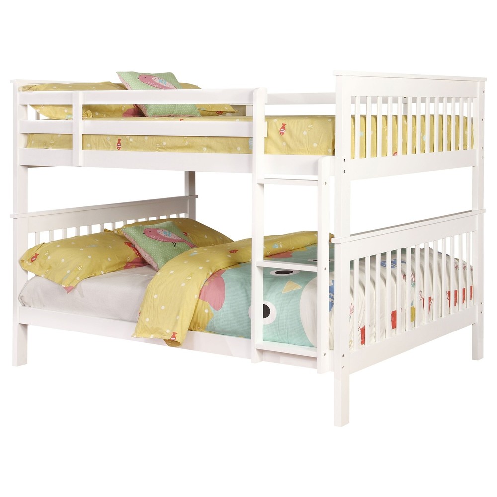 Crisp lines and colors make this classic bunk bed perfect for a multi-functional space. Save room with the built-in ladder and sturdy guard rail. Crafted of solid pine, the sleek lines in the silhouette are supportive and offer enough room for under-the-bed storage or for a trundle (not included). Create a clean look with smooth legs and angles. Great with a variety of motifs, this bed works well with traditional and modern decor. Options: Exact Color Options: Black and White Exact Size Options: Twin Over Full, Full Over Full and Twin Over TwinItem Contents: Includes: One (1) bunk bedItem Bullets: Casual contemporary style bunk bed in multiple sizes, with slatted head and footboards Separates into two individual beds when needed Constructed with solid pine and plywood Slat kit Free Shipping Over $49.99* Details Chapman Transitional Wood Frame Bunk Bed Product Description: Crisp lines and colors make this classic bunk bed perfect for a multi-functional space. Save room with the built-in ladder and sturdy guard rail. Crafted of solid pine, the sleek lines in the silhouette are supportive and offer enough room for under-the-bed storage or for a trundle (not included). Create a clean look with smooth legs and angles. Great with a variety of motifs, this bed works well with traditional and modern decor. Options: Exact Color OptionsBlack and White Exact Size OptionsTwin Over Full, Full Over Full and Twin Over Twin Item Contents: IncludesOne (1) bunk bed Item Bullets: Casual contemporary style bunk bed in multiple sizes, with slatted head and footboards Separates into two individual beds when needed Constructed with solid pine and plywood Slat kit included Materials: MaterialsPine Features: Weight Limit Overall of Twin/Full Bunk Bed400lbs / 600lbs Weight Limit Overall of Full/Full Bunk Bed600lbs / 600lbs Weight Limit Overall of Twin/Twin Bunk Bed400lbs / 400lbs Assembly TypeFull Assembly Required Dimensions: Twin/Full Bunk Bed dimensions58.5 inches wide x 79.75 inches deep x 60.75 inches high Full/Full Bunk Bed dimensions59.5 inches wide x 79.75 inches deep x 60.75 inches high Twin/Twin Bunk Bed dimensions44.25 inches wide x 79.5 inches deep x 60.75 inches high Accessories pictured are NOT included.