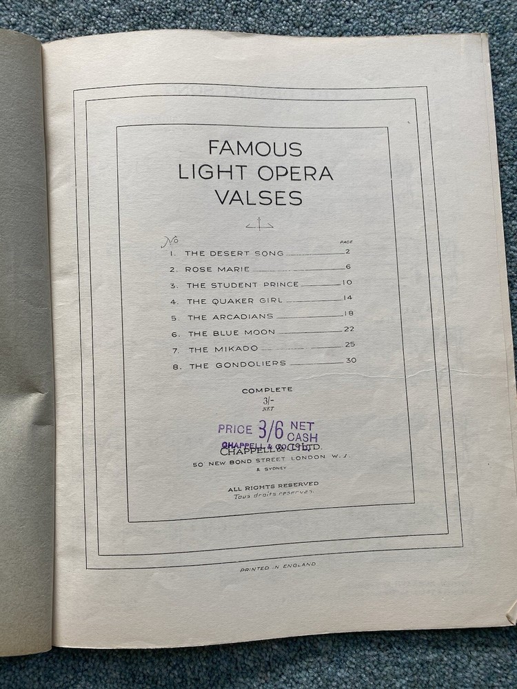 This vintage 35 page musical score of Chappell's Famous Light Opera Valses is a must-have for any intermediate pianist who enjoys playing musicals. It is in good condition except for the spine, which has been taped. The score is perfect for those who want to experience the joy of playing and singing along to classic musicals. With its easy-to-follow notes and beautiful melodies, it is an ideal addition to any pianist's collection. Get your hands on this rare find and relive the golden age of musicals.