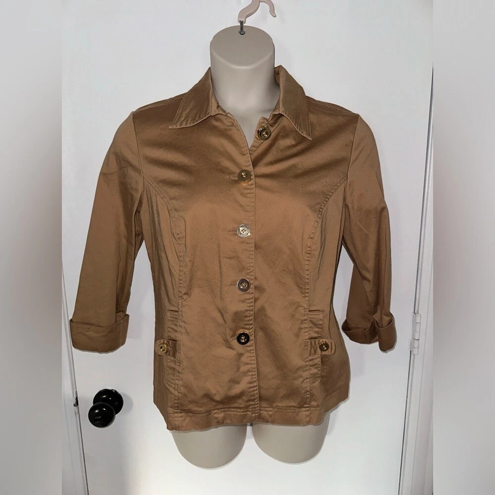 Type:JacketEstado del artículo:De segunda mano - buenoSize Type:RegularBrand:Charter ClubSize:LOuter Shell Material:Cotton BlendTheme:MetalColor:BrownStyle:Military JacketNotas del vendedor:“in good condition.”Department:Women