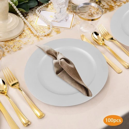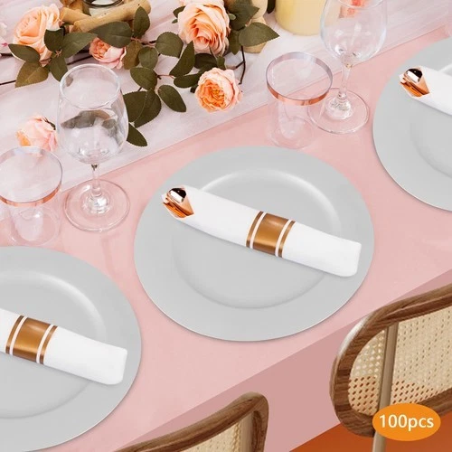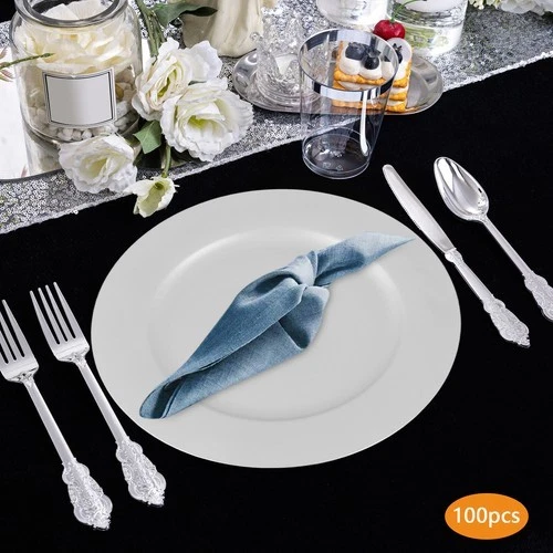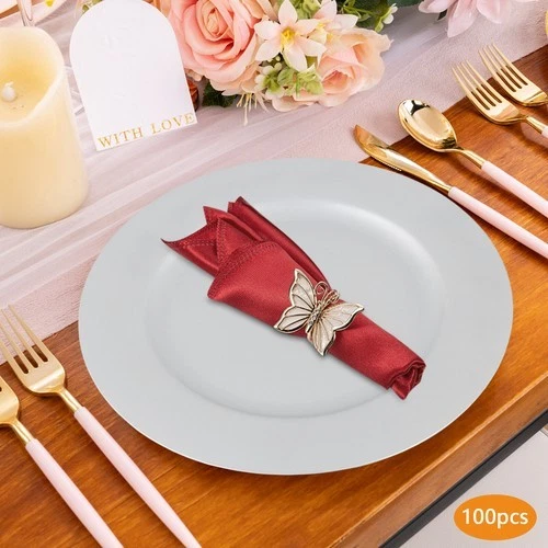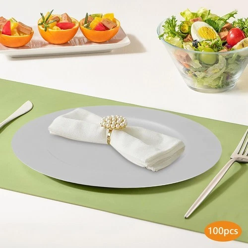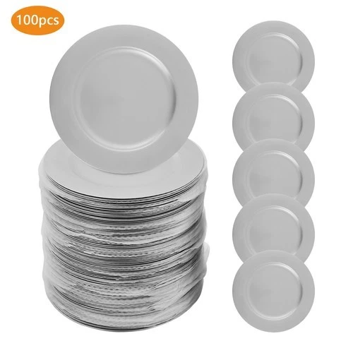 Charger Plates Set, Round Charger Plates, Charger Plate for Wedding Party Silver Charger Plates Set, Round Charger Plates, Charger Plate for Wedding Party Baby Shower Description A set of exquisite plates can add a romantic atmosphere to your banquet. The premium materials and meticulous craftsmanship ensure the durability of each plate. The combination of simple circles and elegant silver looks fashionable and sophisticated, making food look more delicious and a good decoration for restaurants or banquets. We believe this set of plates can bring unique charm to your dining table. Key Features Made to Last: It is mainly made of high-class PP, with a spraying paint process , which is safe to use, impact-resistant, scratch-resistant, non-toxic, odorless , and not easy to break or fade, so you can use it for long periods with confidence. 100 Pieces a Set: A large quantity of 100 pieces of plates works well for family gatherings, business banquets, and daily use in restaurants. Elegant Appearance: The simple circular shape and elegant silver color make it fashionable and high-end, and when paired with other tableware, it can enhance the overall level of the dining table layout and become a good decoration on your dining table. Good Assistant: The exquisite appearance design can better complement the deliciousness of your desserts and make your food look more appealing, both highlighting the tableware and enhancing the presentation of the food at the event. Store with Ease: These plates can be stacked when not in use for convenient storage in your cabinet with less space occupation. Easy to Clean: The smooth surface and simple structure allow you to easily clean it with warm water and a soft cloth(not included ). Ideal Gift: This beautiful and high-class set is an ideal housewarming or holiday gift for your friends, families, and colleagues. Good Customer Service: We stand behind all our guests and look forward to assisting you with your purchase. It is our pleasure to answer your confusion and questions. The end of the story between us is not "we sell and you buy". Details Round Edges: Smooth and burr-free edges not only feel comfortable to touch but also enhance usage safety. Sunken Bottom: It provides a proper place for placing soup bowls to prevent accidental spills and keep the table clean. Application The product is suitable for birthday parties, holidays, weddings, banquets, baby showers, restaurants, hotels, daily life, traveling, camping, picnics, barbecues, or other events. Specifications Color: Silver Style: Mode rn Shape: Round Material: PP Process: Spraying Paint Assembly Required: No Number of Plates: 100 Each Product Size(D*H): 33*2cm/12.99*0.79in Packaging Size: 37*34*34cm/ 14.57*13.39*13.39in Gross Weight: 17.5 kg/38.58 lbs Net Weight: 16.63 kg/36.66 lbs Package Included 100* Charger Plates Notes Please check the style and size carefully before ordering. Please note that the product does not include other items such as dinner knives, forks, or food. This product is disposable. You can also use water to clean after use for reuse according to your preference. It is not recommended to place food directly on this product. Please note that this product is not suitable for dishwashers and microwave ovens. Please allow the slight color difference caused by the shooting light and 1-3cm error due to manual measurement, and make sure you do not mind before you order. Brand CNCEST MPN Does Not Apply Type Plates Color Silver Style Modern Shape Round Material PP Process Spraying Paint Assembly Required No Number of Plates 100 Each Product Size(D*H) 33*2cm/12.99*0.79in Packaging Size 37*34*34cm/ 14.57*13.39*13.39in Gross Weight 17.5 kg/38.58 lbs Net Weight 16.63 kg/36.66 lbs