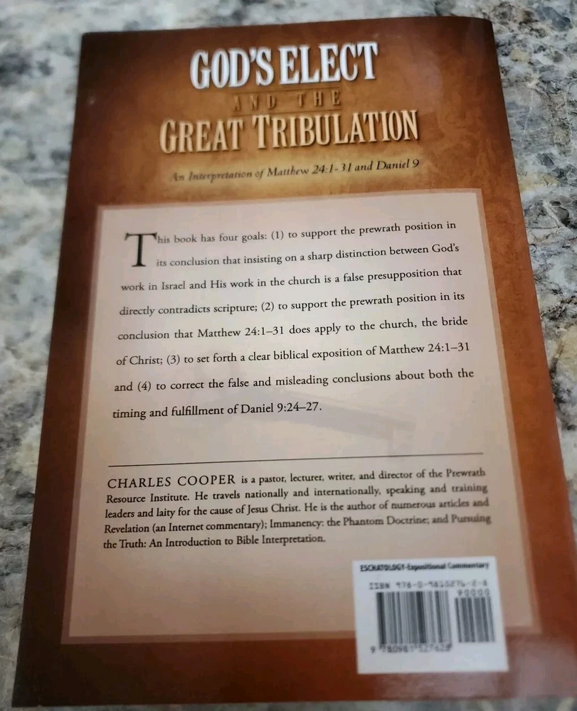 Item Length: 9 in Title: God's Elect and the Great Tribulation Topic: Christian Theology / Eschatology, Eschatology Number of Pages: 348 Pages Item Width: 6 in Language: English Publication Year: 2008 Subtitle: An Interpretation of Matthew 24:1-31 and Daniel 9 Genre: Religion Format: Trade Paperback EAN: 9780981527628 Book Title: God's Elect and the Great Tribulation : an Interpretation of Matthew 24 Release Year: 2008 Type: Theology ISBN-10: 0981527620 Item Weight: 16.5 Oz Item Height: 0.7 in Release Date: 07/15/2008 Publication Name: God's Elect and the Great Tribulation Author: Charles Cooper ISBN: 9780981527628 Publisher: STRONG Tower Publishing gtin13: 9780981527628