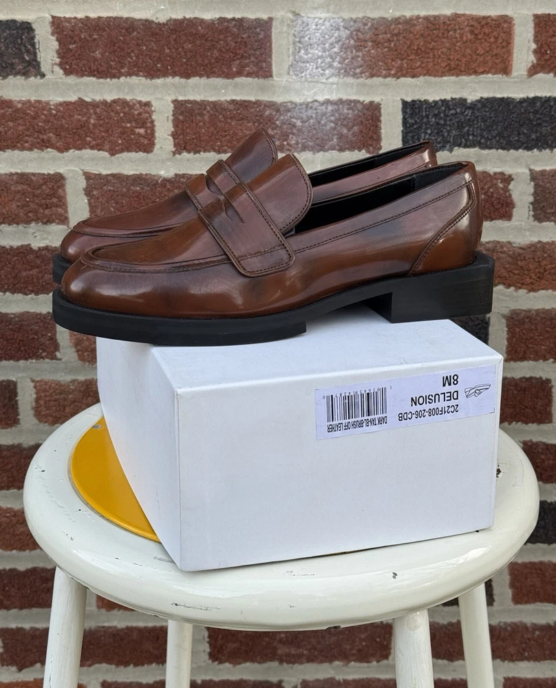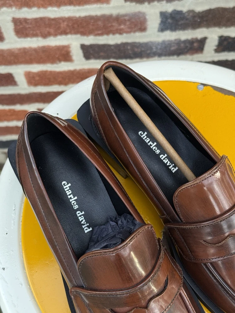 Charles David Delusion Platform Brown Leather Loafers Unisex ◯ NEW!!! SIZE: WOMEN’S - 8M MEN’S - 6.5 TERMS AND CONDITION: Ⓞ All Items are 100% AUTHENTIC ! Ⓞ Some items are in USED CONDITION and will show signs of wear, please see the condition of the item as detailed in the description and note any defects shown in pictures of the items. If there are any questions please reach out before purchasing. Ⓞ Item MEASUREMENTS are AMATEUR and I try my best to document the sizing accurately. If there are any questions please reach out before purchasing. Ⓞ NO REFUND / ALL SALES ARE FINAL ! Ⓞ By buying from my STORE, you agree to my POLICY ! THANKS, BUY HAPPINESS 🛒