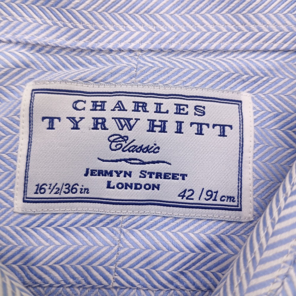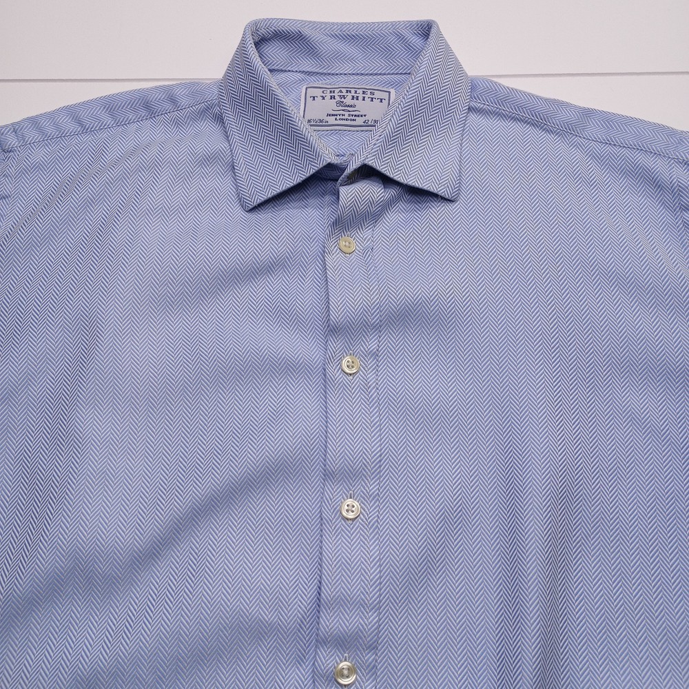 Scroll down to view item description, details, condition, and shipping information . Each pre-owned item is professionally cleaned prior to shipment and it arrives clean, fresh, and ready to wear. Classic Charles Tyrwhitt dress shirt crafted in a refined blue herringbone weave with a crisp non-iron finish, offering a polished Ivy League aesthetic ideal for professional and elevated casual wear. This Classic fit shirt features a smooth, structured drape and breathable cotton fabric that pairs effortlessly with tailored trousers, chinos, or layered under a blazer. Clean, timeless, and versatile, this piece reflects traditional Jermyn Street craftsmanship. Gently pre-owned and well maintained. Item Details Brand: Charles Tyrwhitt Style: Dress Shirt Size: 16.5 / 36 Color: Blue Material: Cotton Fit: Classic Fit Sleeve Length: Long Sleeve Pattern: Herringbone Made in: Not specified Condition: Pre-owned, excellent condition. No stains, holes, or excessive wear. Clean and ready to wear. Features Classic herringbone weave with refined texture Non-iron finish for easy care and sharp appearance Traditional spread collar suitable for business or formal wear Classic fit with comfortable, structured drape Timeless Ivy League style inspired by Jermyn Street tailoring Shipping Ships next business day from the United States with tracking. Carefully inspected, photographed, and stored in a smoke-free environment. Approximate Measurements (Laid Flat) Pit to Pit (Chest Width): inches Sleeve Length (Shoulder to end of Sleeve): 27 inches Overall Length (Top of Shoulder to Bottom Hem): 32 inches Return Policy Changed your mind? No problem. We accept returns within 30 days for any reason, including sizing or satisfaction. Items must be returned in the same condition as originally sent. Cancellation Policy Orders may be canceled or returned within 30 days of delivery, provided the item is returned in the same condition it was shipped. Shipping Policy Orders are processed within 1 business day of receiving payment Please confirm your shipping address at checkout - addresses cannot be changed once an order is placed All merchandise ships from the United States Every shipment includes USPS tracking, provided once the order ships Shipping is included in the total price We ship exclusively via USPS for reliable, consistent delivery Domestic & International Shipping We ship to all U.S. states and offer worldwide international shipping. Your Feedback Matters Positive feedback is greatly appreciated and helps support our small business. If you have a good experience, we would be grateful for your review. If there is any issue with your order, please contact us through eBay messaging before leaving feedback. We are easy to work with and committed to resolving concerns quickly and fairly. Condition Notice What you see is what you get. Please review all photos carefully for a clear and accurate view of the item's condition.
