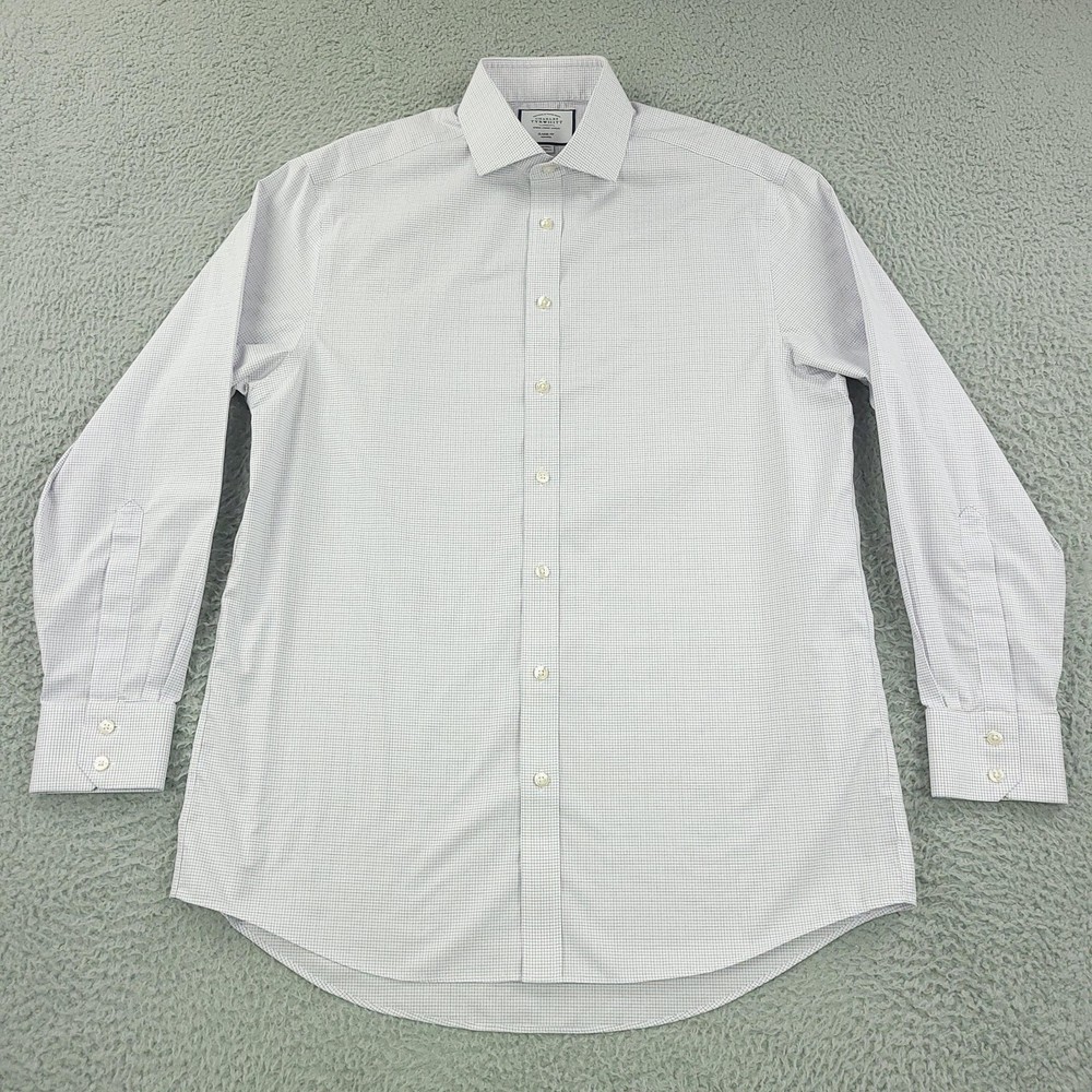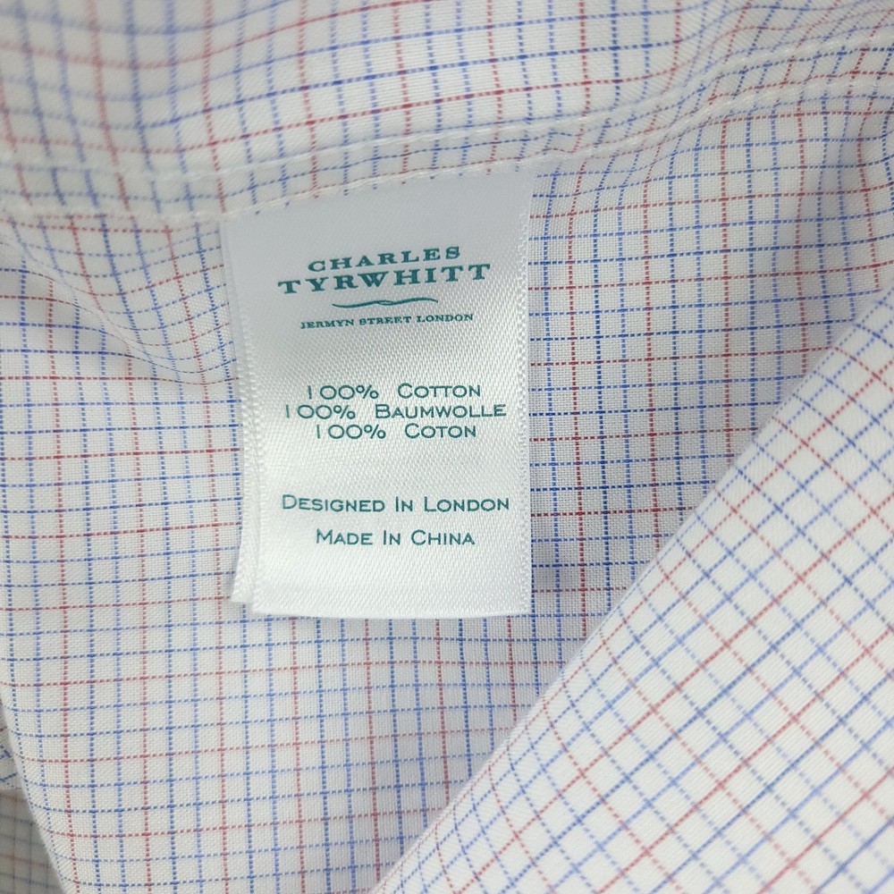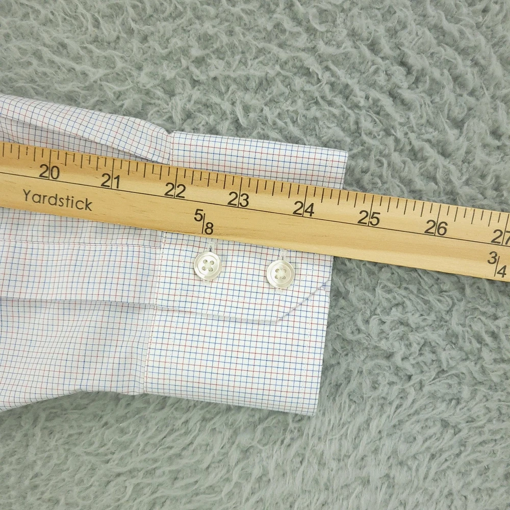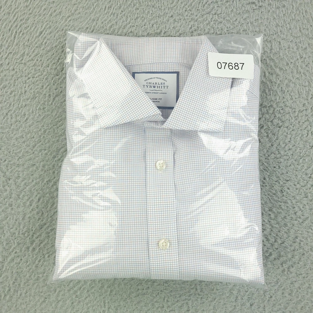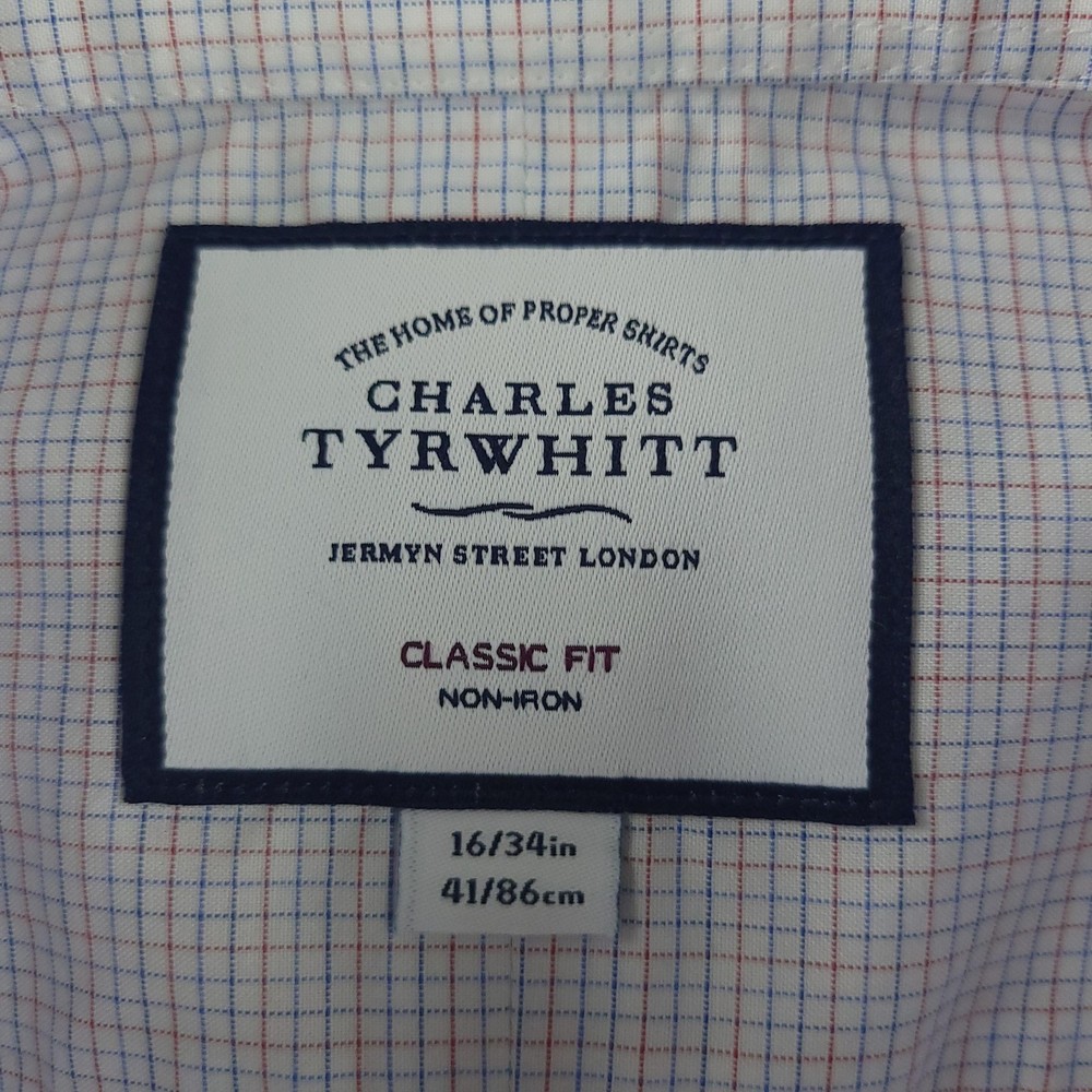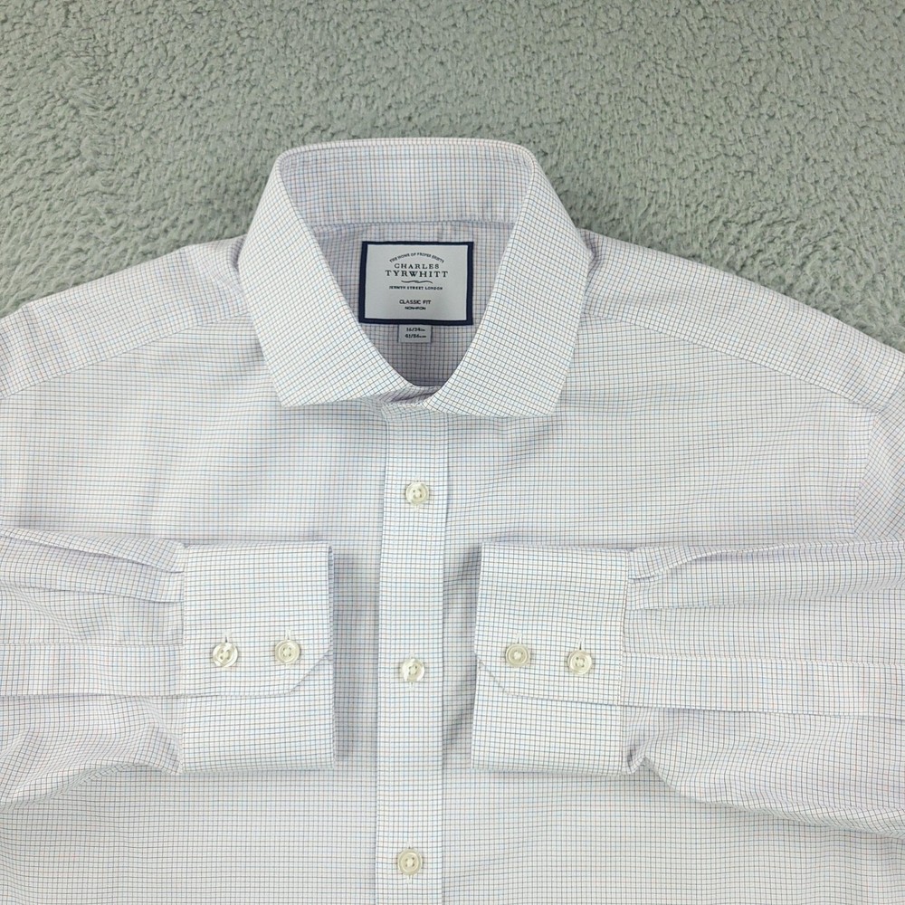 Charles Tyrwhitt Dress Shirt Mens 16 34/35 White Check Classic Fit Non Iron Brand: Charles Tyrwhitt Style: Mens long-sleeve dress shirt with classic fit silhouette, spread collar, and full button front. Color: White base with fine blue and red micro check grid pattern. Size: Mens 16 Material: 100% cotton woven fabric. Designed in London and made in China. Details: Tag features "The Home of Proper Shirts" and "Jermyn Street London" branding, classic fit label, non-iron designation, barrel cuffs with adjustable buttons, back yoke with pleats, and curved shirttail hem. Features: Non-iron easy-care cotton fabric, breathable lightweight feel, spread collar suitable for ties, versatile dress shirt ideal for office wear, business casual outfits, or formal occasions. Measurements are included in the photos, compare measurements with your item to ensure proper fit. Items are added daily click here to Visit My Store Combined shipping for US customers is 1.99 for each additional item Items are cleaned per eBay standards & policies