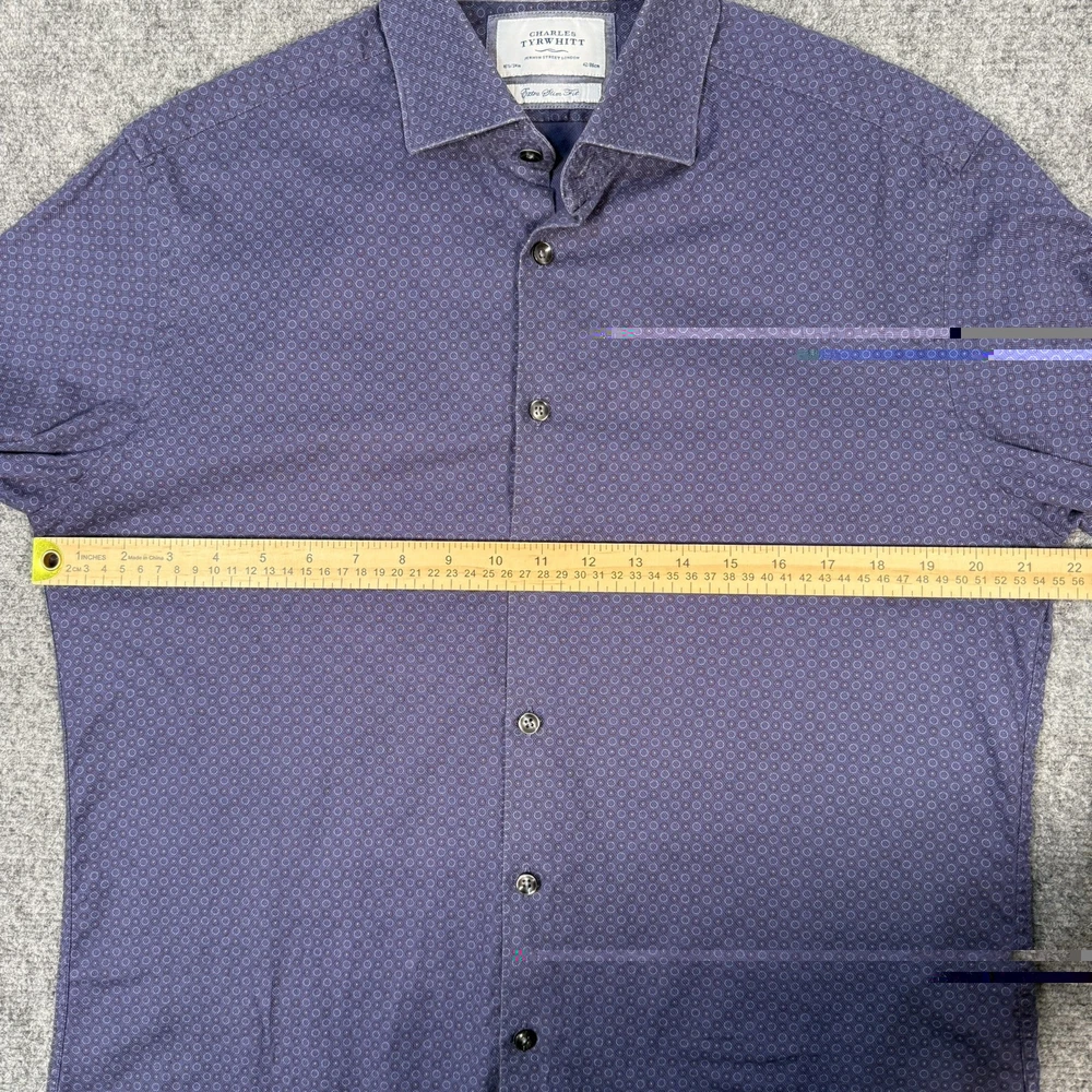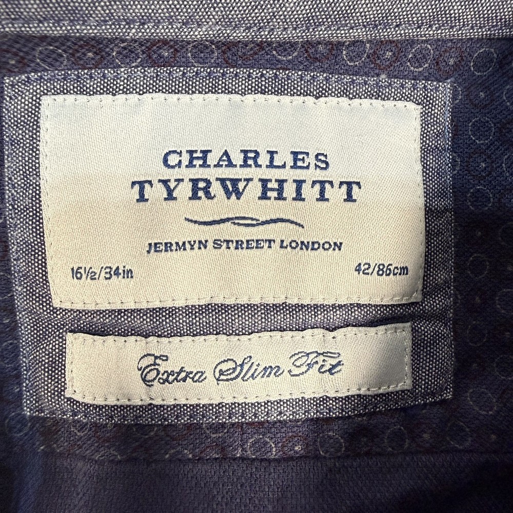 π Charles Tyrwhitt Jermyn Street London β¨ Product Details Upgrade your professional wardrobe with this sharp Charles Tyrwhitt dress shirt. Featuring a modern extra slim fit and a sophisticated navy geometric circle pattern, it's perfect for the office or formal events. Brand: Charles Tyrwhitt Size: 16.5" Neck / 34" Sleeve (42/86cm) Fit: Extra Slim Fit Material: 100% Cotton Color: Navy Blue with White/Light Blue Geometric Pattern Design: Spread collar and button cuffs π Measurements β’ Chest (Pit to Pit): 21.5" β’ Length (Shoulder to Hem): 29.5" β’ Sleeve (Top of shoulder to cuff): 24.5" π Condition Report Excellent Pre-Owned Condition! π No stains, holes, or significant signs of wear noticed. Fabric is crisp and colors are vibrant. All original buttons are securely attached. π¦ Shipping Information π¨ Fast shipping! All items are handled with care and stored in a smoke-free environment. Check my feedback and buy with confidence!