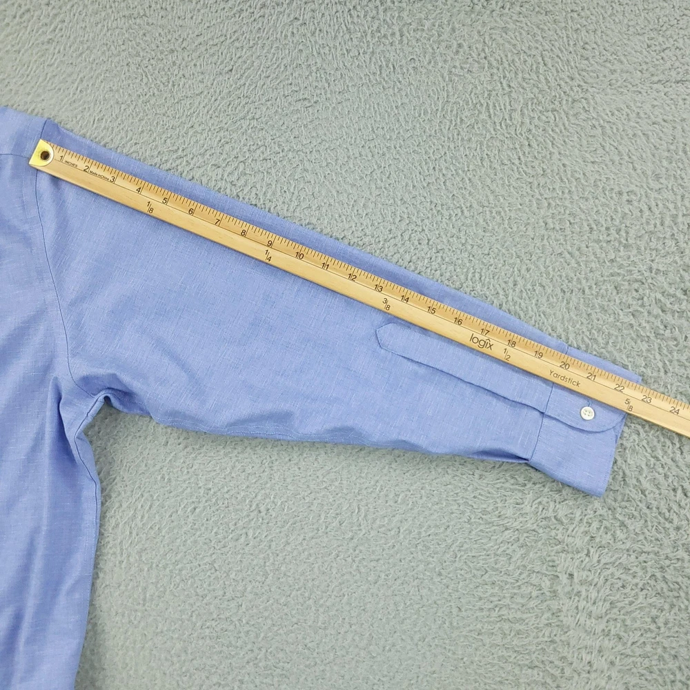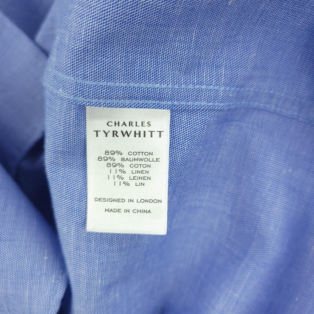 Brand: Charles Tyrwhitt Item: Mens long sleeve button-front dress shirt. Color: Light blue. Fit: Classic Fit with spread collar and single-button barrel cuffs. Fabric content (per tag): 89% cotton, 11% linen. Features: Non-iron fabric, collared neckline, button front closure, curved hem. Size on tag: 16½ in neck / 33 in sleeve (42/84 cm). Designed in London; made in China. Washed and dried with Fragrance Free Detergent & Dryer Sheets. Measurements are included in the photos, compare measurements with your item to ensure proper fit. (Measurements are done with the item lying flat). I ship next business day and all items include tracking. Items are added daily to my store Visit My Store Buy More & Save! Combined shipping for US customers - $1.99 for each additional item (Add items to shopping cart and discounts will automatically calculate during checkout)
