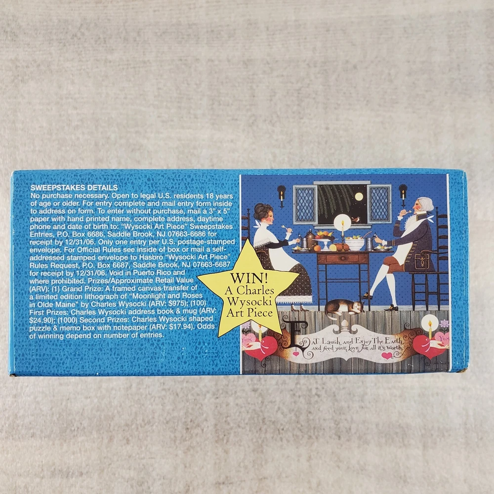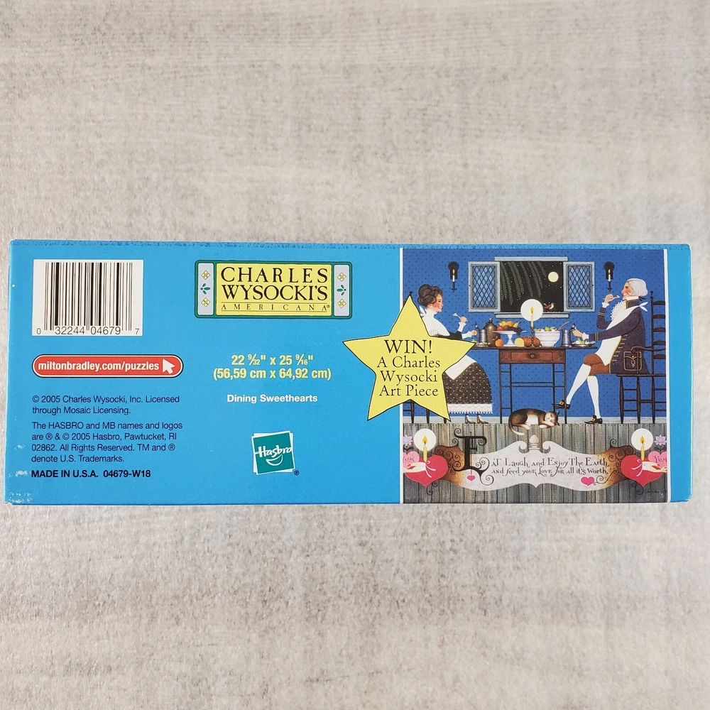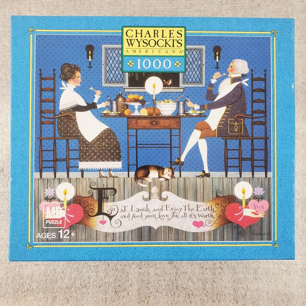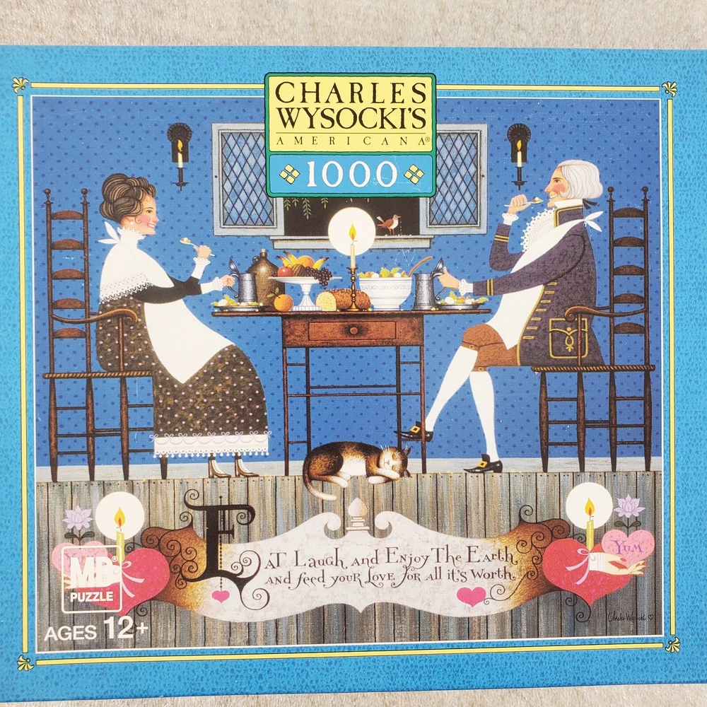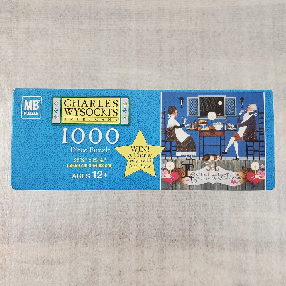 Charles Wysocki Dining Sweethearts 1000 PC Puzzle Hasbro MB SEALED New Good condition. Please view the photos carefully for condition details. Don't forget to check out the other items in my shop. I'm getting in new fun things all the time. Thank you for looking! Have a great day!