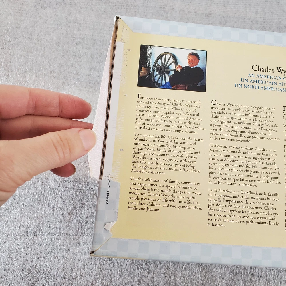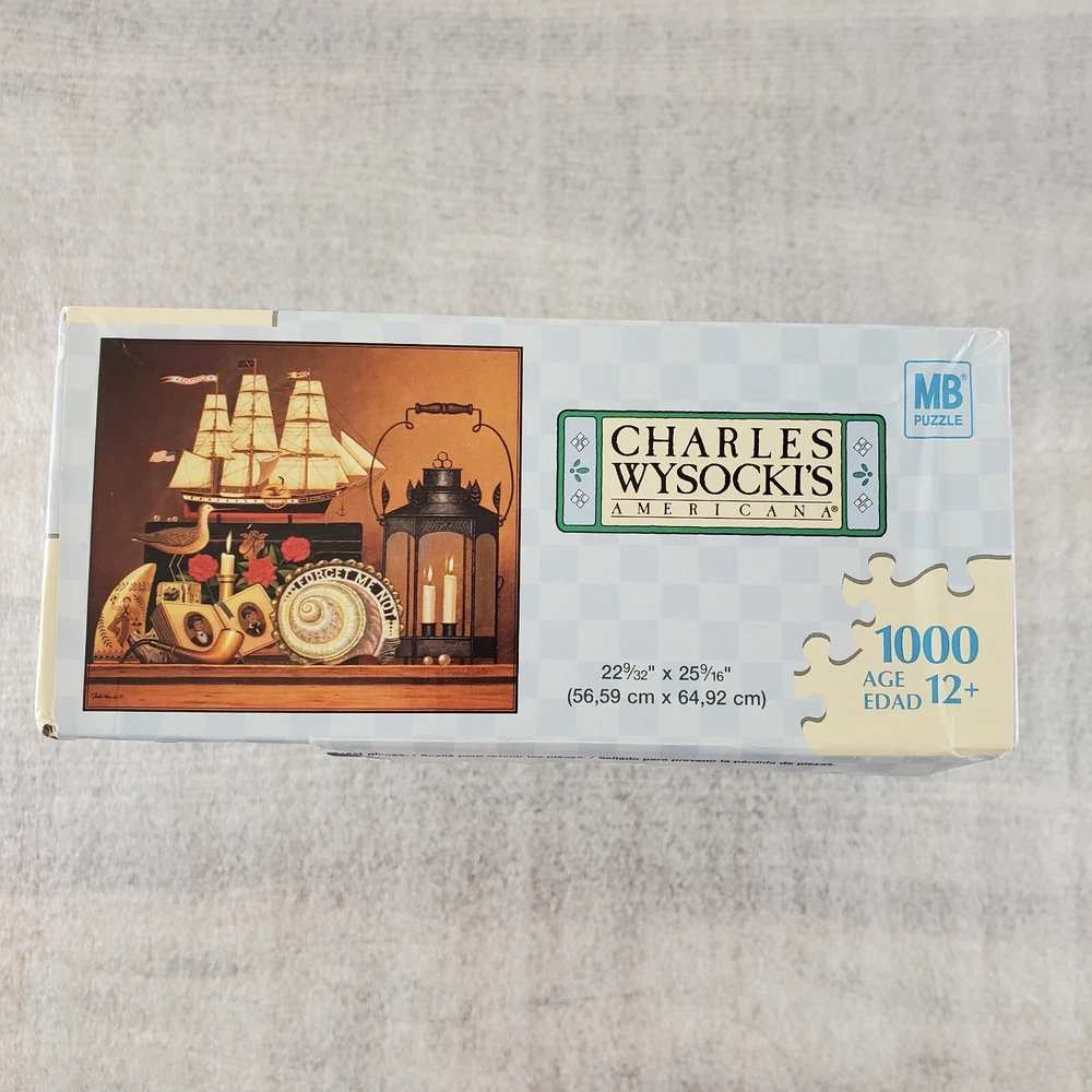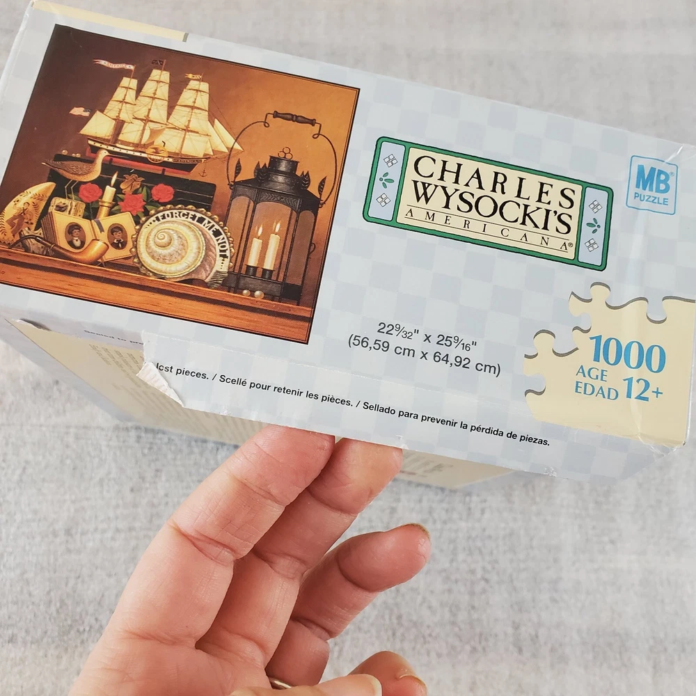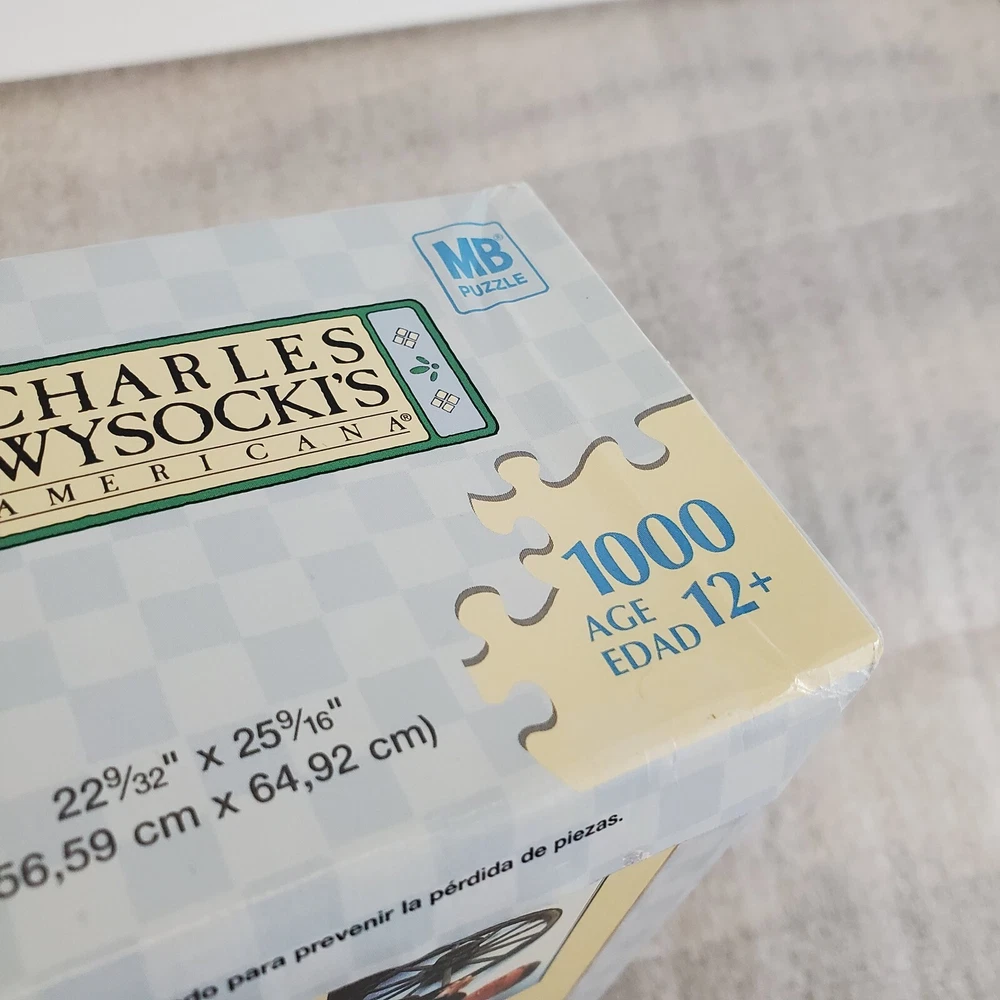 Charles Wysocki Peddler's Hope Chest 1000 PC Puzzle Hasbro MB SEALED read A little damage on one side of box (pushed in) and some of the paper seal pulling loose from the bottom. Please view the photos carefully for condition details. Don't forget to check out the other items in my shop. I'm getting in new fun things all the time. Thank you for looking! Have a great day!