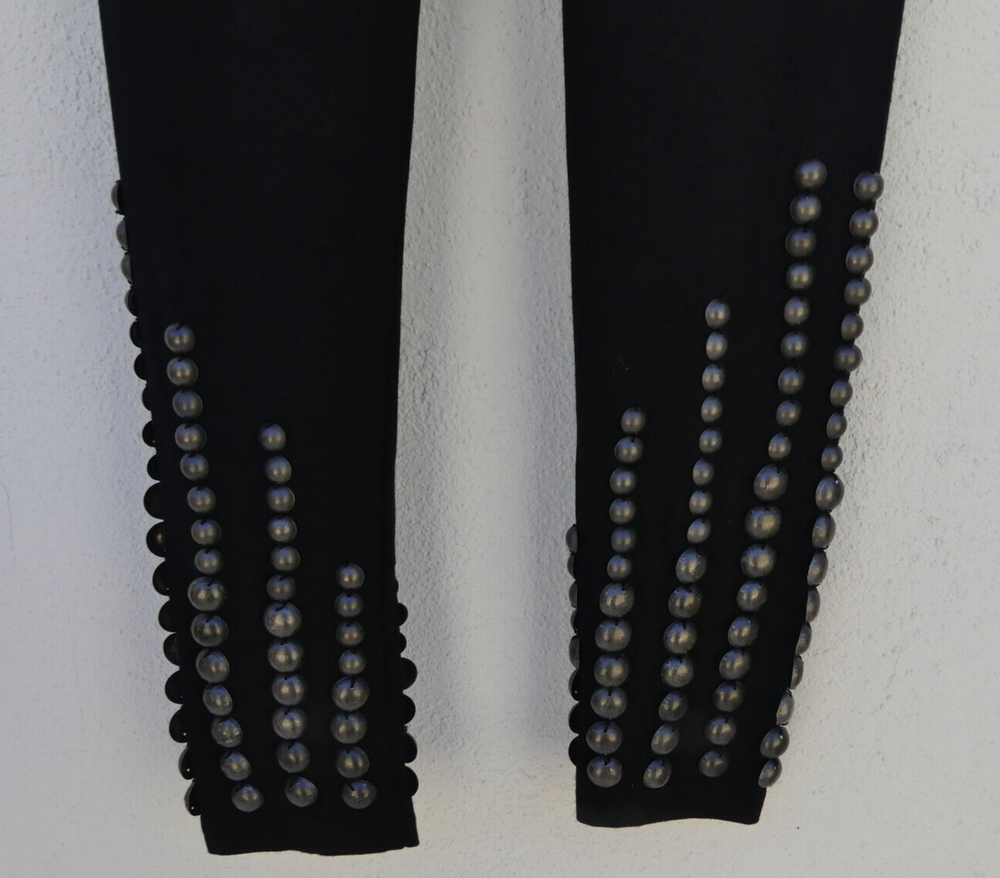 These gorgeous PANTS are a LEGGINGS style. They’re black, in a soft, stretchy fabric and have an elasticated waist. They have dark grey studs on the end of each leg. There are spare studs in a bag on the label, should you ever need them. They are from CHARLIE BROWN and are a size 6, but please check the measurements below, to ensure a good fit. The approximate measurements are: Waist: 54m Length: 97cm Front Rise: 18cm For any other measurements, please use the ‘Contact Seller’ button. They are Brand New, With Tags (rrp $199). Lots more information about these fabulous pants can also be found in Item Specifics. F007 Please take a look at the tons of other gorgeous items I have available in your size! I love to combine postage and save you money! So if you are purchasing more than one item from me, please wait for me to send you a combined invoice, or press the 'Request a Total' button in your Cart before paying. I rate my items in the following way: BNWT / BNWOT: Brand New, With Tags or Brand New, Without Tags (some part of the tag will still be attached). New items that have never been worn. EXCELLENT: has been worn, but shows very few actual signs of wear. GOOD: has been worn and is showing light signs of wear. FAIR: has been worn and is showing more signs of wash/wear - or has a small fault, which will be clearly described in the listing I am only human and can make mistakes in my listings and descriptions - so if for any reason you are unhappy with your purchase, please contact me using the 'Contact Seller' button first, so we can quickly resolve the issue. This item comes from a SMOKE FREE HOME but the odd puppy hair may drift in due to the fact she is my darling shadow throughout the day.