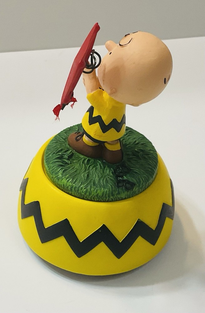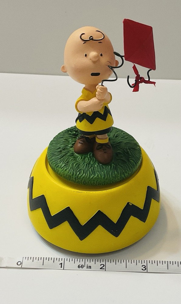 The Peanuts - Charlie Brown Flying Kite Westland Giftware Musical Figurine is an original vintage collectible featuring the beloved character Charlie Brown from the Peanuts franchise. This animated-themed figurine plays a musical tune and is perfect for all occasions. Made by Westland Giftware, this unique piece is a must-have for any Peanuts fan or collector of nostalgic items.