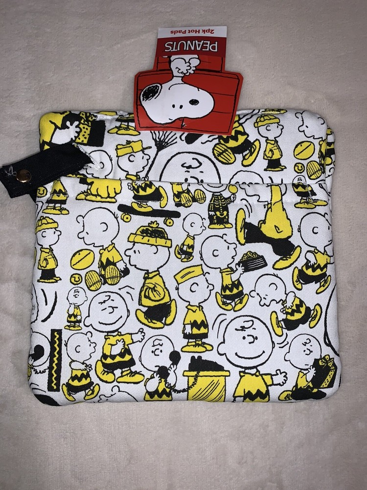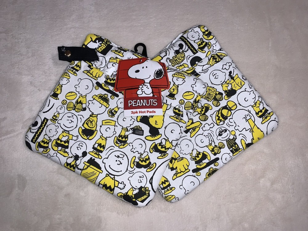 PEANUTS Charlie Brown A Day In The Life Of 2 PACK Hot Pads Oven Mitts Yellow