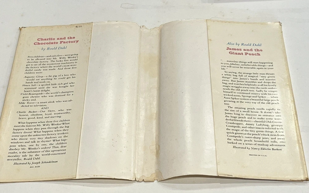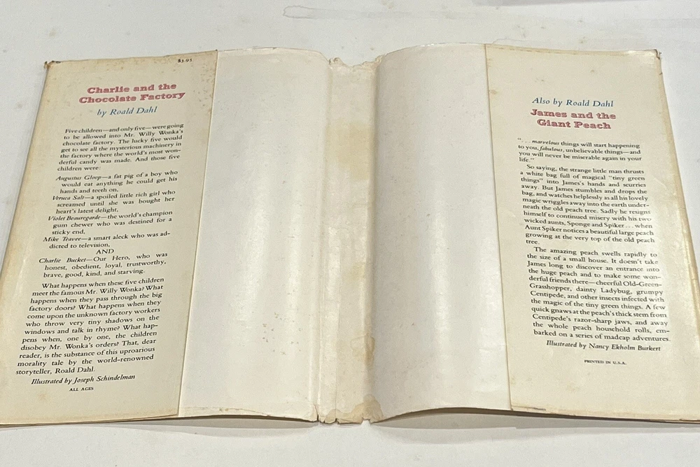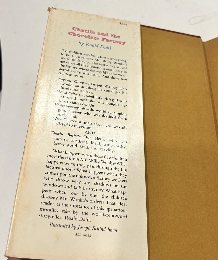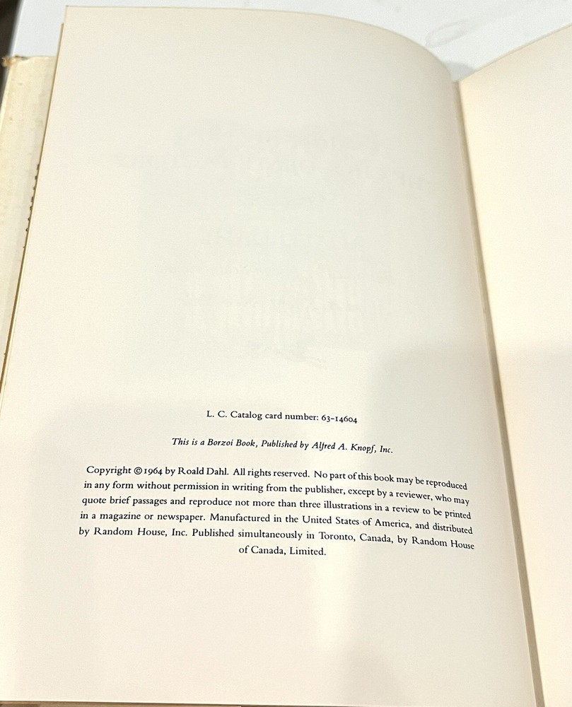 The product is a first edition, second print hardcover copy of "Charlie and the Chocolate Factory" by Roald Dahl, published by Alfred A. Knopf in 1964. This vintage book includes special attributes such as a dust jacket and illustrations, making it a valuable collectible item for fans of fairy tales and fantasy literature, especially for children who enjoy imaginative storytelling. With its original printed language in English, this book is a must-have for collectors and readers looking to delve into the whimsical world created by the renowned author. Hardcover 1964 1st Edition 2nd Print. Please see pics for detailed views.
