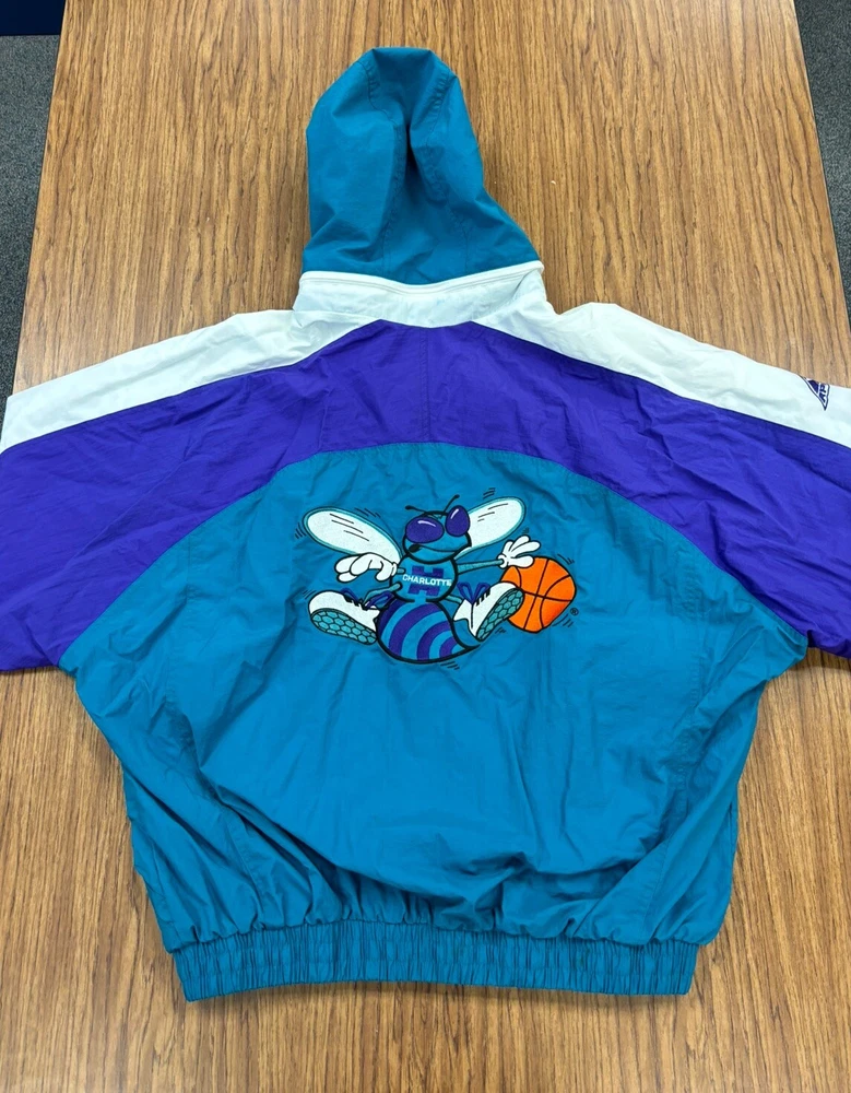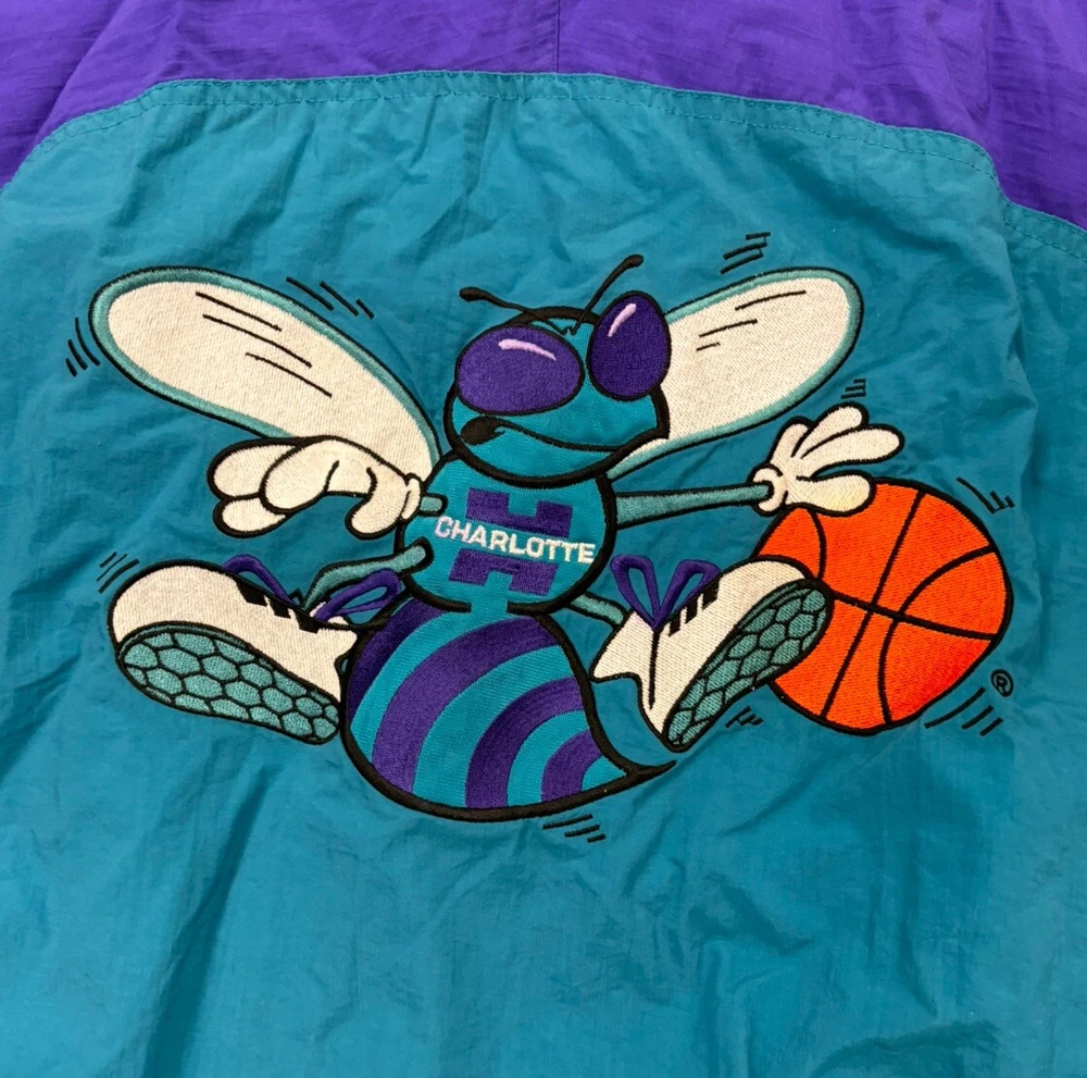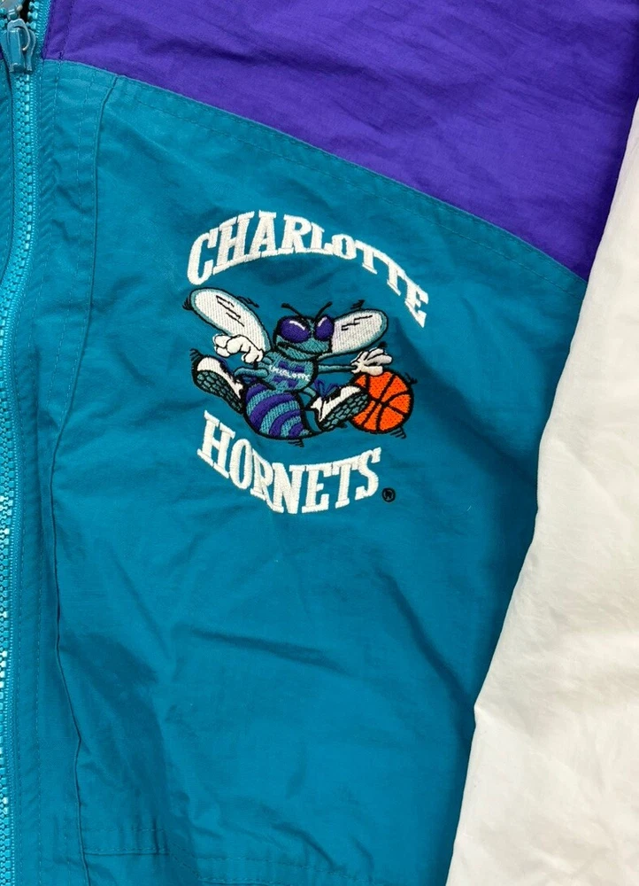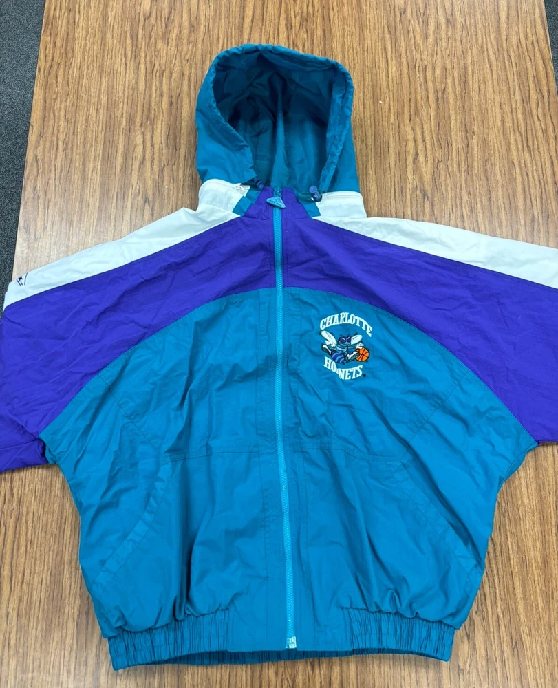 Charlotte Hornets Vintage Apex One Full Zip Puffer Jacket NBA 1990s Size XL/TG. Small areas of discoloration. See pictures for item details.