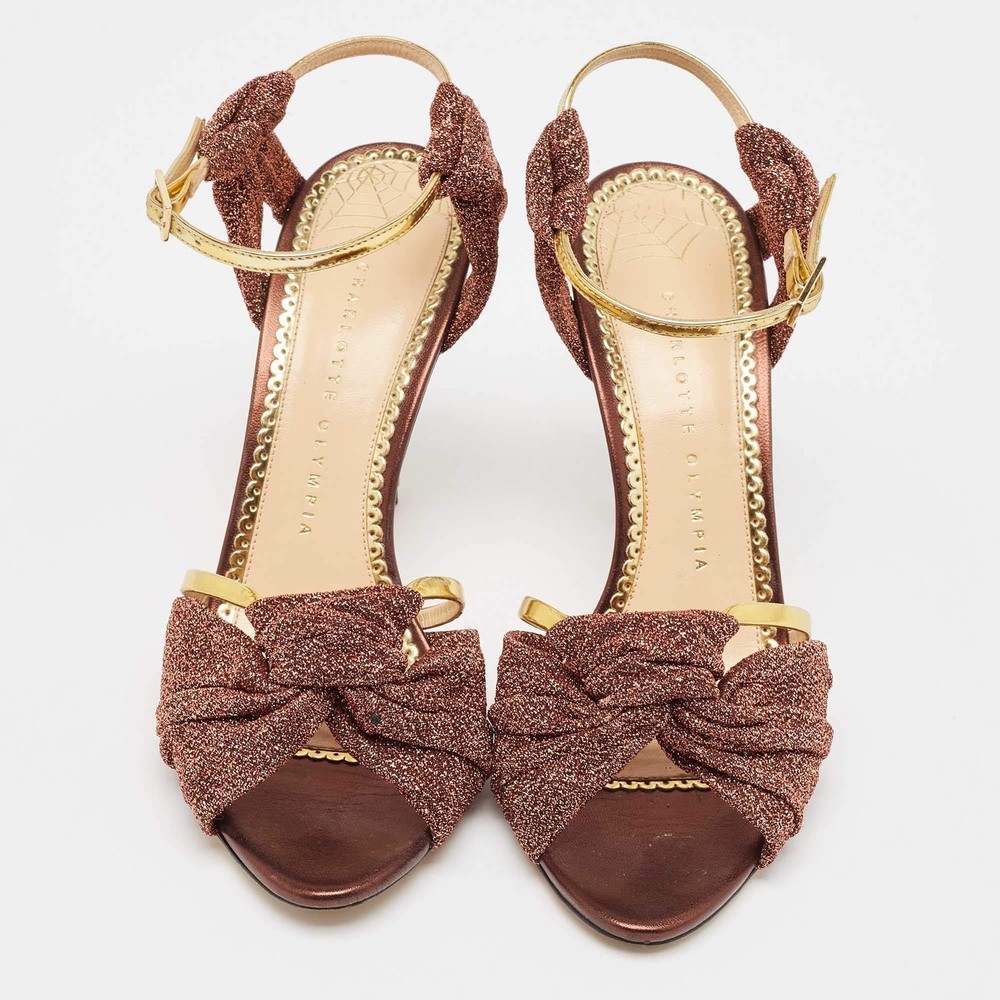 Our eBay Store About Us Contact Us Add to Favorite Sellers Charlotte Olympia Metallic Leather and Lurex Fabric Ankle Strap Sandals Size 385 These Charlotte Olympia sandals feature a stunning blend of metallic leather and shimmering lurex fabric, creating a glamorous, eye-catching effect. The ankle strap ensures a secure fit, while the elegant design exudes sophistication. Product Details Brand Charlotte Olympia Color Metallic Includes Original Dustbag Outsole Length 23 cm Outsole Width 8 cm Size 38.5 Certified by The Luxury Closet This item has gone through a detailed authentication process overseen by our experts. We offer a lifetime guarantee of authenticity on all our items. How We Check The in-house team of experts at The Luxury Closet is highly trained to verify the authenticity and the condition of the luxury products. They ensure that only 100% authentic items are put on sale.The evaluation process is unique with its own mix of assessment criteria and differs according to the category. Each item is evaluated based on the following combination of hallmarks, hardware, stitching, symmetry, material, craftsmanship, stamping, codes, hologram stickers, and packaging. Our authenticators also check if the items have been modified or amended (e.g., aftermarket diamonds, replaced batteries, repaired bags, etc.) International Buyers Import duties, taxes and charges are not included in the item price. These charges are the buyers responsibility. Please check with your country’s customs office to determine what these additional cost will be prior to buying.