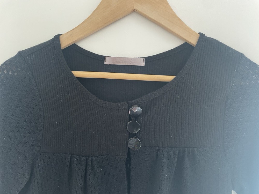 Charlotte Russe Women's Solid Black Polyester Blend 3/4 Sleeve Button Cardigan L. Condition is pre-owned. Smoke free, pet free home. Shipped via USPS Ground Advantage. In very good condition. Free of rips or stains.
