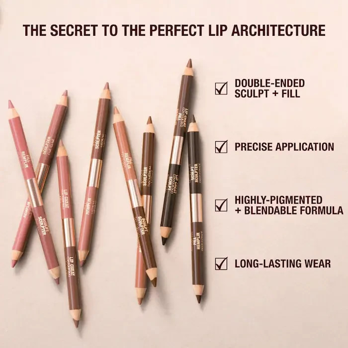 What it is: A two-in-one contour trick for fuller-looking lips, featuring two highly pigmented, blendable formulas in one easy-to-use pencil, formulated for all skin tones. Formulation Type: Lip Liner Benefits: Hydrating, Long-wearing, and Plumping Ingredient Callouts: Free of parabens, formaldehydes, formaldehyde-releasing agents, phthalates, retinyl palmitate, oxybenzone, coal tar, hydroquinone, sulfates SLS & SLES, triclocarban, triclosan, and contains less than one percent synthetic fragrance. What Else You Need to Know: Sculpt and fill for enhanced-, fuller-looking lips with Charlotte Tilbury’s Lip Cheat Contour Duo. The duo features two long-wearing formulas: a darker, precision 'sculpt' end to create contouring shadows, paired with a lighter, soft and creamy 'fill' end to add all-over color. Discover four 90s nude shades expertly formulated for fair, medium, tan, and deep skin tones. Fill: Ethylhexyl Palmitate, Synthetic Wax, Zeolite, Mica, Stearyl Dimethicone, Bis-Diglyceryl Polyacyladipate-2, Hydrogenated Polydicyclopentadiene, Diisostearyl Malate, Octadecene, Glycine Soja (Soybean) Protein, Pentaerythrityl Tetra-Di-T-Butyl Hydroxyhydrocinnamate, Tribehenin, Glycyrrhiza Glabra Leaf Extract, Phospholipids, Sorbitan Isostearate, Lactic Acid, Palmitoyl Tripeptide-1, Citronellol, [+/- Titanium Dioxide (Ci 77891), Iron Oxides (Ci 77491, Ci 77492, Ci 77499), Red 30 (Ci 73360)]. Sculpt: Mica, Caprylic/Capric Triglyceride, Stearyl Dimethicone, Hydrogenated Palm Glycerides, Polyglyceryl-3 Methylglucose Distearate, Octadecene, Cera Microcristallina/Microcrystalline Wax/Cire Microcristalline, Synthetic Wax, Kaolin, Synthetic Fluorphlogopite, Glycine Soja (Soybean) Protein, Ethylhexyl Palmitate, Tocopherol, Tribehenin, Ascorbyl Palmitate, Glycyrrhiza Glabra Leaf Extract, Phospholipids, Sorbitan Isostearate, Lactic Acid, Palmitoyl Tripeptide-1, Citronellol, Geraniol, [+/- Titanium Dioxide (Ci 77891), Iron Oxides (Ci 77491, Ci 77492, Ci 77499), Red 7 (Ci 15850), Zinc Oxide (Ci 77947)].