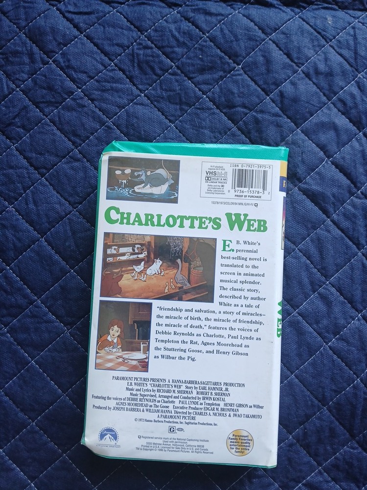 "Charlotte's Web" is a classic animated film released in 1973 by Paramount. It is a family-friendly movie with a G rating, perfect for all ages. The story follows the adventures of Wilbur the pig and his friendship with Charlotte the spider, making it a beloved choice for many families. This VHS tape allows viewers to enjoy the heartwarming tale of "Charlotte's Web" in the comfort of their own home.
