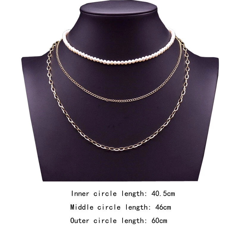 01 style Korean version Korean / Korean style Material :Pearl Kind of necklace style :women's Styling :flowers The main metal material is :14K gold 02 style European and American Material :Pearl Kind of necklace style :women shape :geometry chain style :water wave chain Metal material is :copper gold plated Inner ring circumference: 40.5cm The circumference of the middle circle: 46cm Outer ring circumference: 60cm