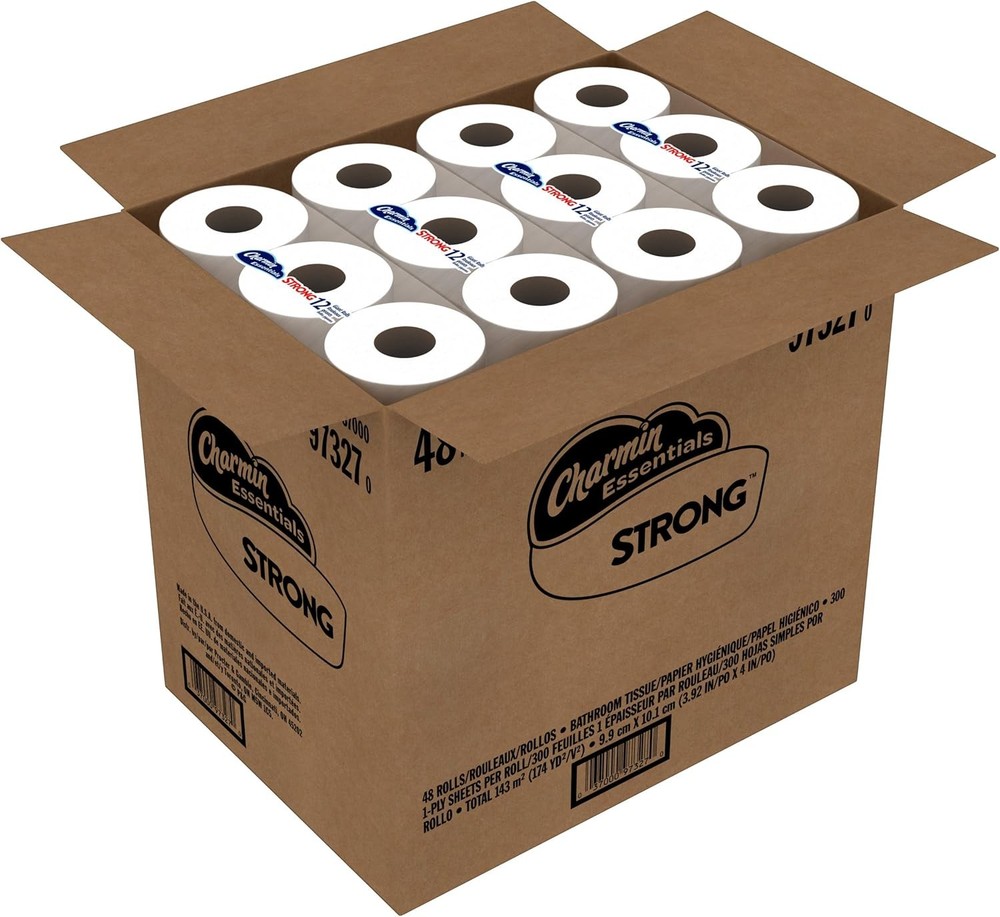 The item was shipped through US Stock, so it arrived faster than expected All items are brand new and unopened, 100% authentic, 24 hours message reply Charmin Essentials Strong Toilet Paper, 1-Ply, Giant Rolls, 48 Count Brand :Charmin Special Feature: Clog Free, Septic Safe Unit Count: 14400 Count Material :Paper Sheet Count: 14400 Ply Rating :1-Ply Recommended Uses For Product :Bath Material Feature: Septic safe Color :Original Version Item Form: paper About this item ack contains 48 Giant Rolls (300 sheets per roll) of Charmin Essentials Strong bulk toilet paper Charmin's strongest 1 ply toilet paper Clog safe and septic safe; Roto Rooter approved 3X stronger when wet vs. the leading bargain brand 1 case contains 48 Giant Rolls for your bulk toilet paper buy