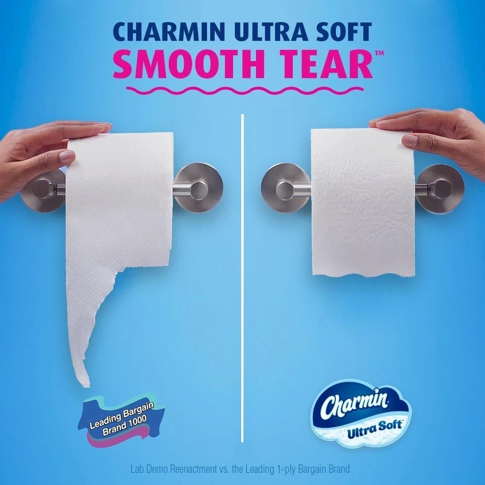 Charmin Ultra Soft Toilet Paper – 6 Mega Rolls (224 Sheets Each, 2-Ply) Get premium softness and lasting strength with Charmin Ultra Soft Toilet Paper . Designed for comfort and convenience, each Mega Roll equals 4 regular rolls , giving you more value and fewer trips to the store | . K ey Features: 6 Mega Rolls = 24 Regular Rolls (224 sheets per roll) 2-Ply Softness & Strength: Irresistibly soft, yet holds up during use Better Tear & More Absorbent: Smooth Tear™ perforations and 2X absorbency vs. leading USA 1-ply bargain brand Septic-Safe & Clog-Safe: Safe for home plumbing and septic systems Mega Value: Each Mega Roll equals 4 regular rolls, perfect for home or bulk use Why Choose Charmin Ultra Soft: Cushy comfort you can feel with every go Holds up so your hands and behind stay clean Trusted brand – America’s favorite toilet paper Enjoy smooth, strong, and plush toilet paper with Charmin Ultra Soft – 6 Mega Rolls for long-lasting comfort and convenience!