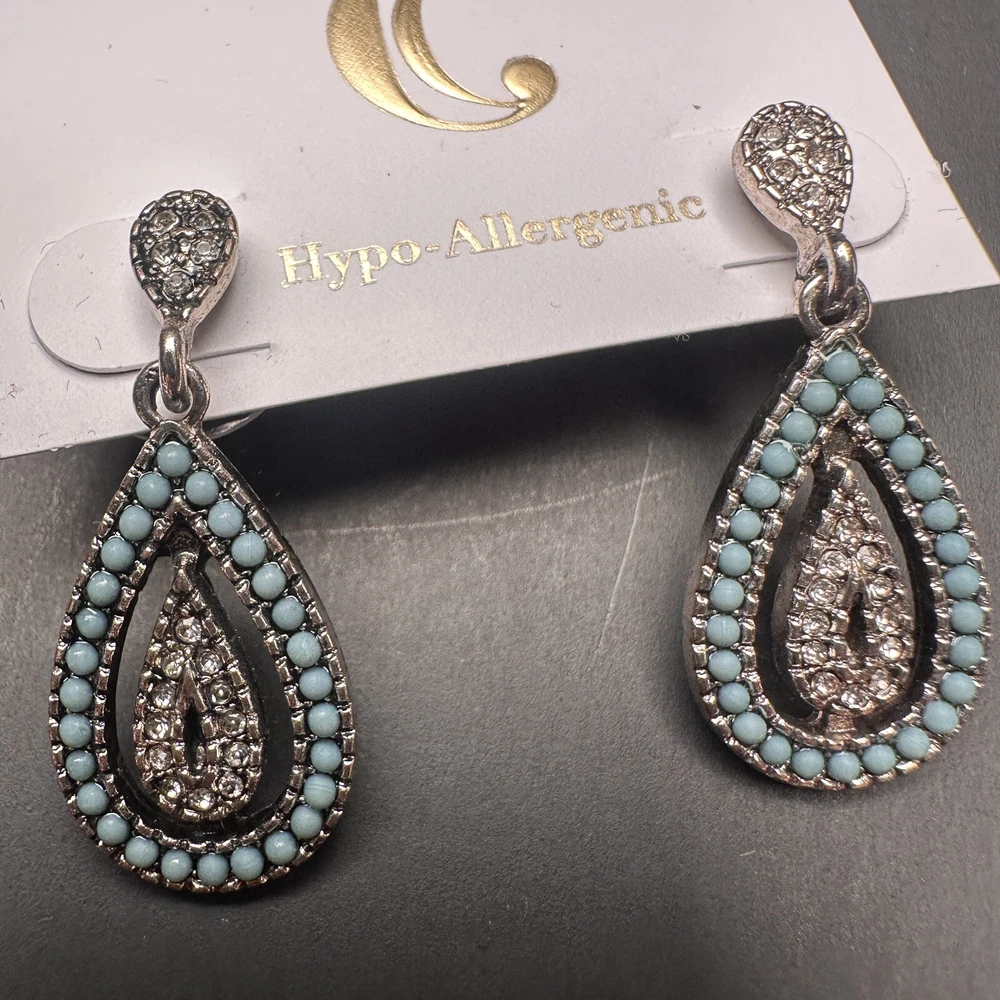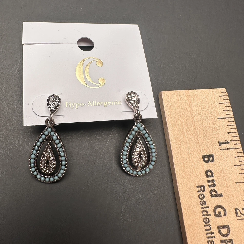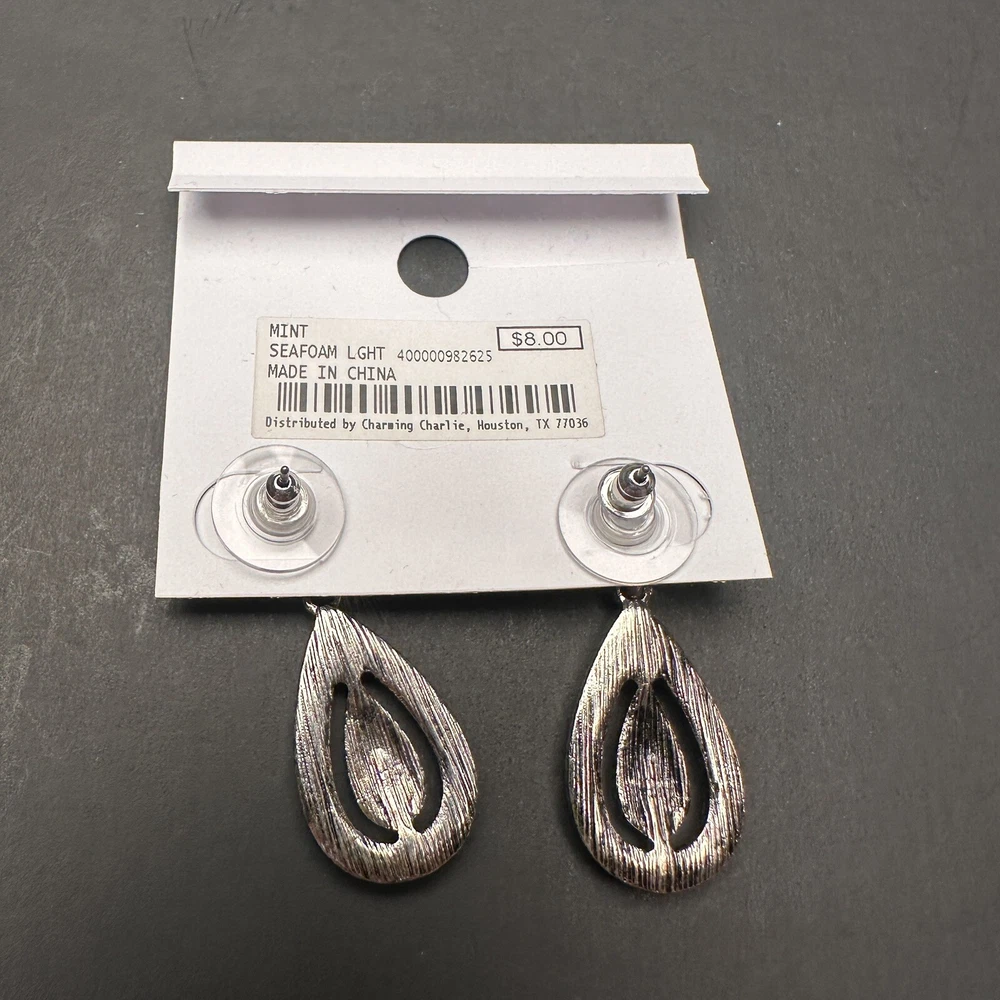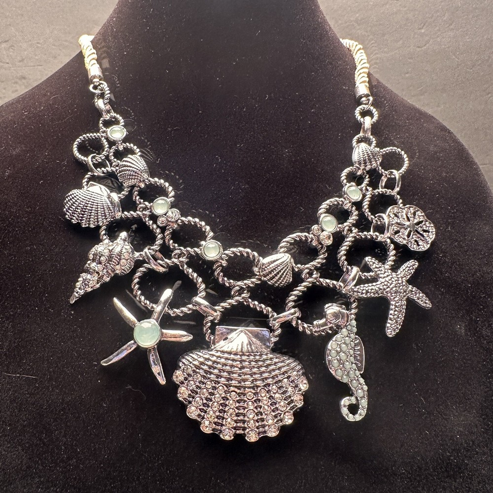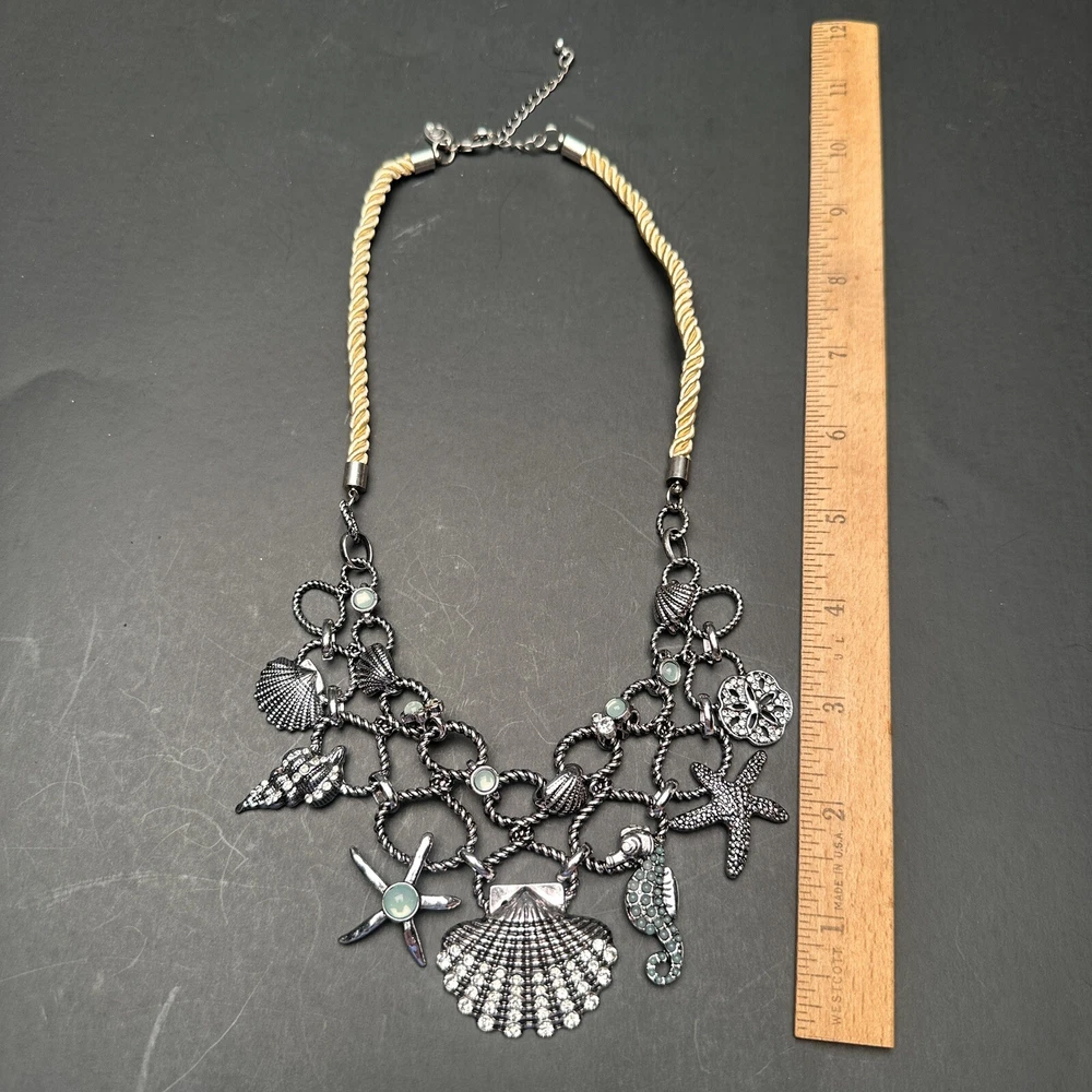 Signed Charming Charlie Khaki Rope & Sky Blue Crystal Silver Beach Theme Necklace and Earrings Set Earrings are new with tags. I don’t think that the necklace was ever worn, but I do not have a tag for it. Both are signed Charming Charlie