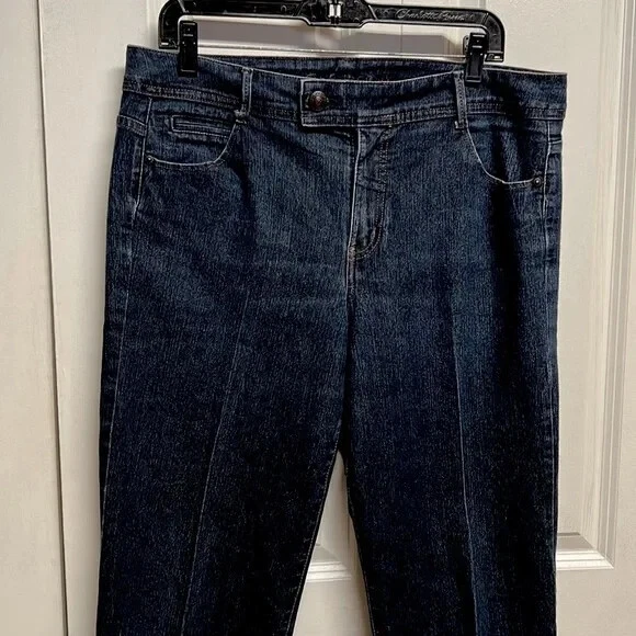Get ready to rock your fashion game with these Charter Club Women's Jeans in a medium blue wash. These jeans feature a flattering mid-rise fit with a modern straight cut and a cropped length that is perfect for any season. The 5-pocket design includes a zip and button closure for easy wear, while the studded, embroidered, and button accents add a touch of personality. Made from a comfortable and breathable cotton blend with a dark wash, these jeans are easy to care for and also have shaping and stretch features for a flattering fit. Complete with a belted waist and a solid pattern, these jeans are a classic and versatile addition to any wardrobe. Don't miss out on this must-have piece from the Charter Club line. very Light faded Otherwise very good pre owned condition 75% cotton 23% polyester 2% spandex stretch denim machine washable 36’ around waist inside button 43’ around hips 11.50’ front rise 25’ leg inseam 16’ around leg bottom nice for Spring and Summer