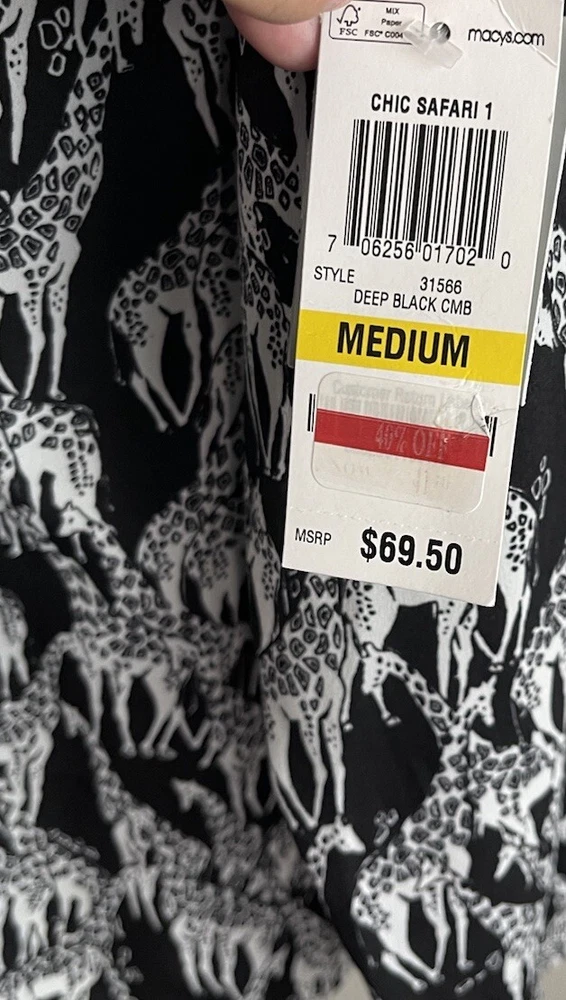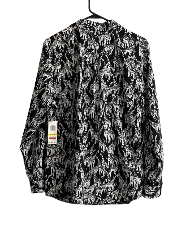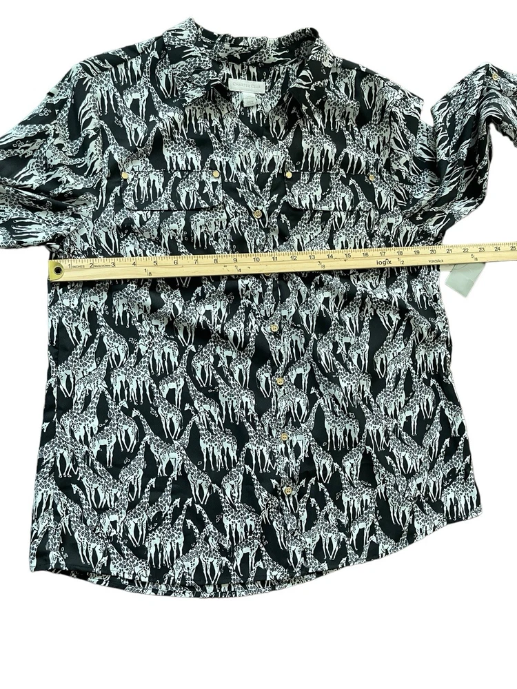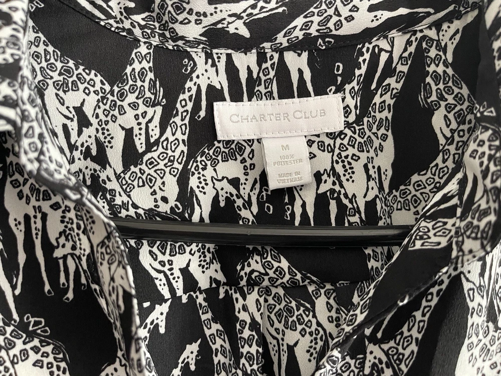 Charter Club Black Giraffe Print Button Up Long Sleeve Blouse Size Medium Safari. Condition is New with tags. Shipped with USPS Ground Advantage.