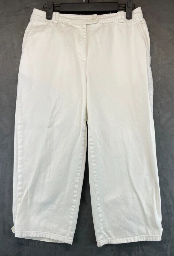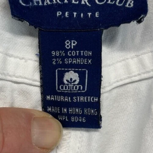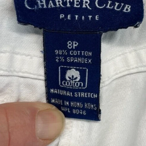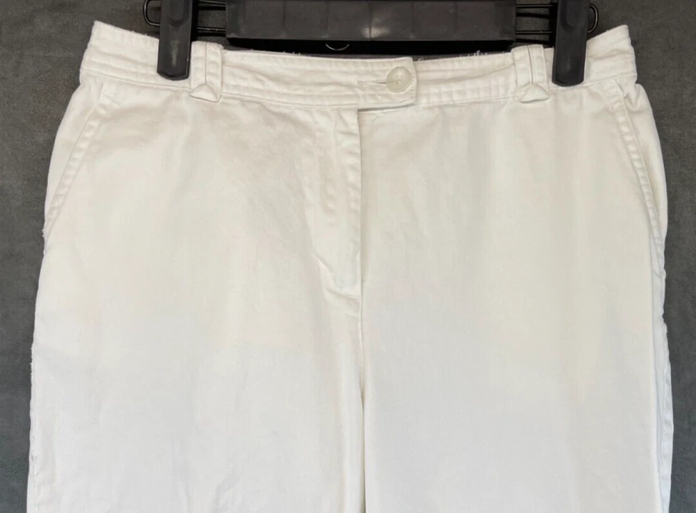 These Charter Club Capri Pants are in womens size 8P with a white color. They have a straight leg style, mid rise, and feature a zip and button closure. Made of spandex and cotton, they offer stretch and easy care. Suitable for occasions like travel, parties, or casual wear, these pants have a 20-inch inseam and a flat front design. Perfect for the summer and spring seasons, they have a beach, flower, and bohemian theme. Very good preowned condition with normal preowned wear and no issues. Please see all photos. For clothing specifically, see photos for all measurements and/or any issues if applicable. Pay close attention to the measurements as the size of the garment may quite possibly be different than the actual measurement(s) due to washing, shrinkage, or stretching as these are used clothes. The size in the title is the size on the tag of the garment. See photos for measurements of actual measurements as they may differ. ALWAYS CHECK THE MEASUREMENTS IN THE PHOTOS. This will remove any questions on measurements as well as always cover the possibility of human error in the listing(s) in the case of a typo or oversight. All clothing and shoes have been washed/cleaned, and comes from a smoke free environment. If shoe trees appear in the photos, they are for photography purposes only to illustrate how the shoes look filled out, and are not included. I am available for questions. I accept or negotiate reasonable offers. Have an amazing day. Thank you.