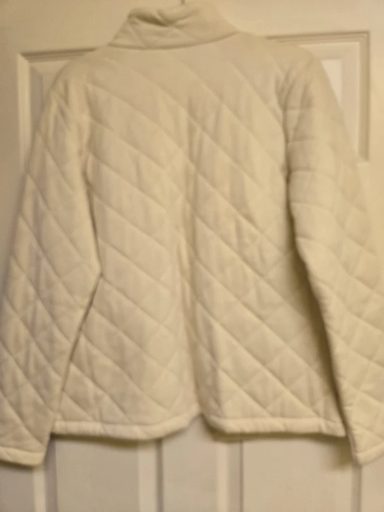 Charter Club Coat Womens Large Lightweight Off White Quilted Collar Snap *