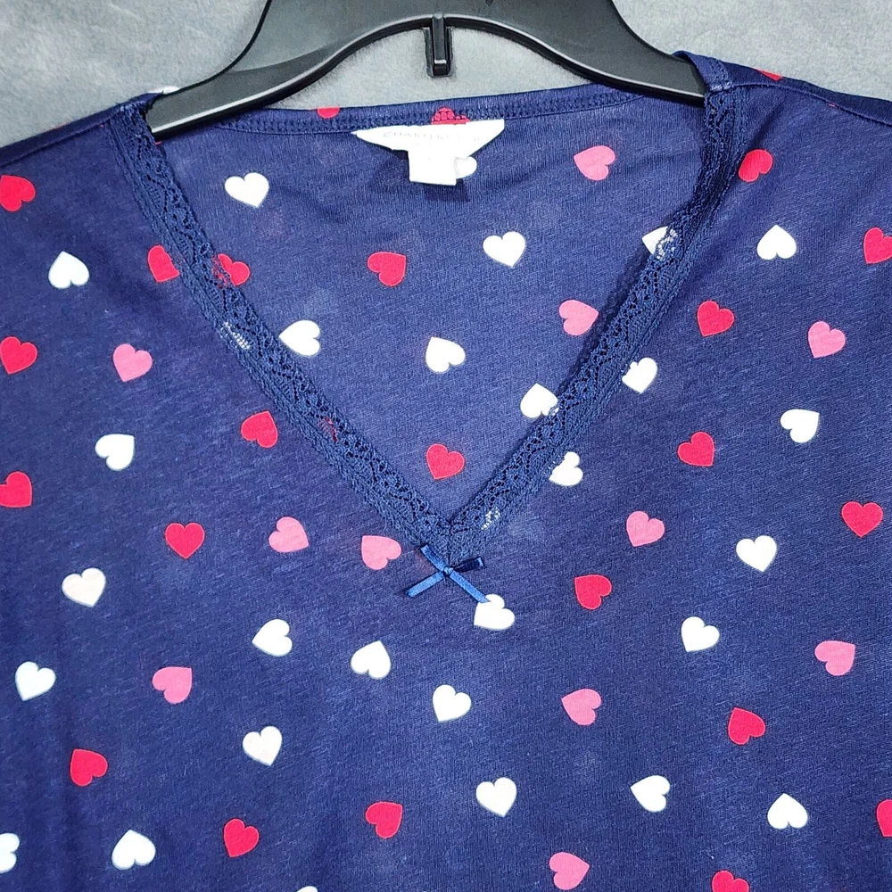 Charter Club Cotton Long Sleeve Lace Trim Pajamas Set XS Navy Blue Multi Hearts V-neck pullover top with long sleeves and lace trim Pull on bottoms with elastic waist band stretchy light weight cotton New with tags. Paper hang tag may be torn or have tape or stickers attached/detached Inv# 09-095