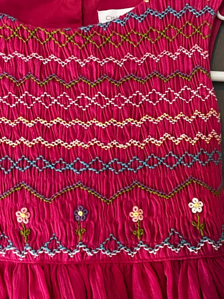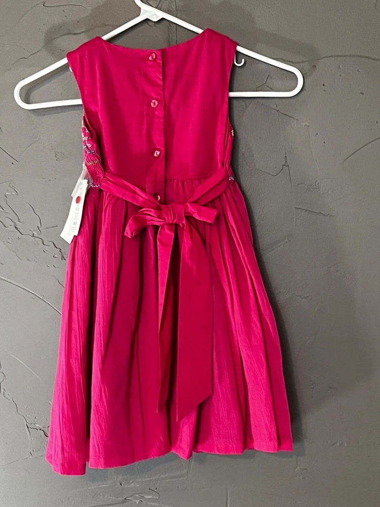 Charter Club Girls Fuchsia Sleeveless Dress with Embroidery NWT Top front of dress has ruching with embroidered flower and patterns Size: 4/4T Color: Fushia Rose New with Tags Comes from smoke free home Material: Body 100% Cotton; Lining 65% Polyester & 35% Cotton Machine Wash Cold
