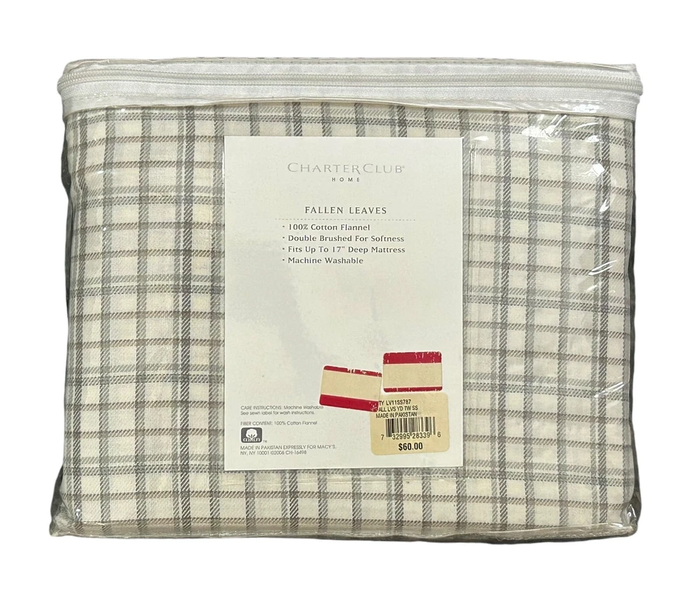 ~~~ Charter Club Home Fallen Leaves 100% Cotton Flannel Twin Sheet Set - NEW ~~~ - TWIN Sheet Set - NEW - 100% Cotton Flannel - Double Brushed - Fits Up To 17" Deep Mattress