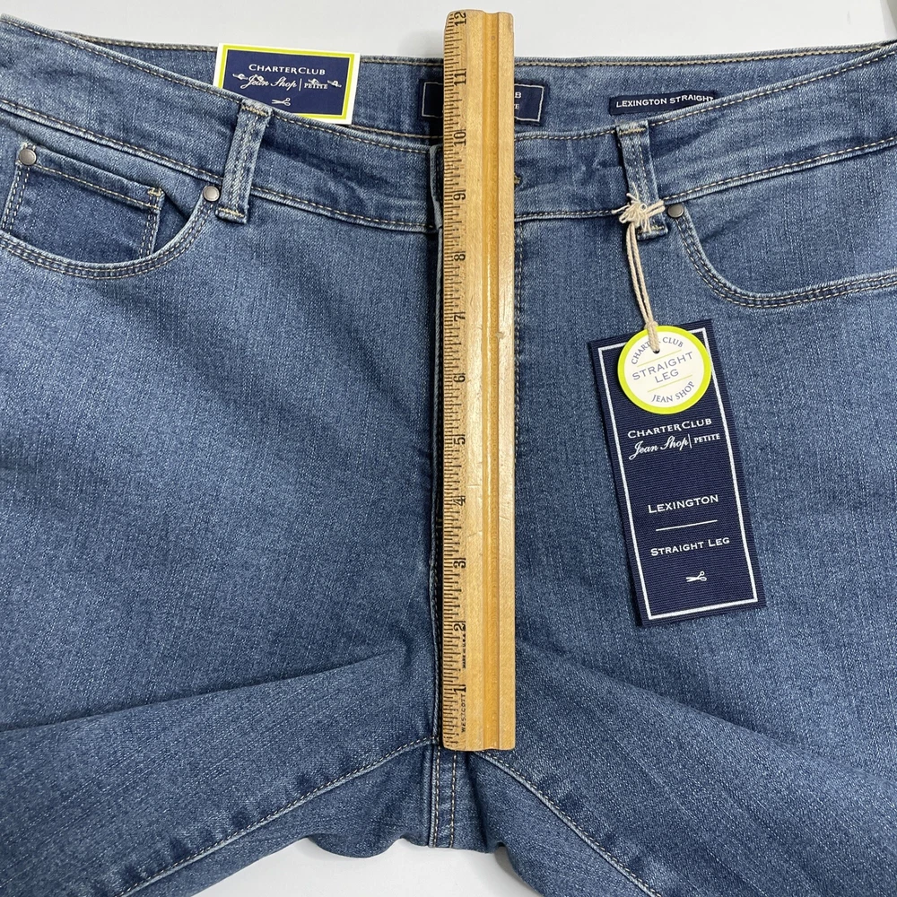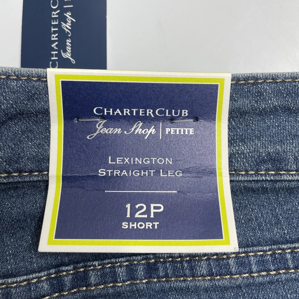 Charter Club Jeans Women's Petite Sz. 12P Short Lexington Straight Leg 10" Rise CHECK THE MEASUREMENTS. Title only states tag size. Sizes can vary. Condition is used. Tag still attached. See photos for condition and detail. Please look carefully at all photos. The photos are an important part of the description. If you have questions, please ask. Returns are accepted within 30 days of purchase. The item must be returned in exactly the same condition as received. Items will be inspected, serial numbers checked, etc. Shipping fees are not refundable.