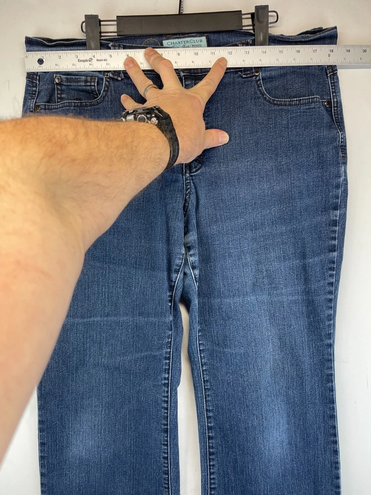 These Charter Club jeans are a must-have for any fashion-forward woman. They feature a high-rise waist and a bootcut style that flatters your curves while providing a comfortable fit. The jeans are made of a durable fabric that stretches to fit your body, making them perfect for all seasons. The jeans have a 5-pocket design with a zip and button closure and come in a beautiful blue color. They are easy to care for and machine washable. The Charter Club jeans are perfect for any occasion, whether you're heading to class, working in the city, or enjoying a night out with friends. Very good preowned condition with normal preowned wear and no issues. Please see all photos. For clothing specifically, see photos for all measurements and/or any issues if applicable. Pay close attention to the measurements as the size of the garment may quite possibly be different than the actual measurement(s) due to washing, shrinkage, or stretching as these are used clothes. The size in the title is the size on the tag of the garment. See photos for measurements of actual measurements as they may differ. ALWAYS CHECK THE MEASUREMENTS IN THE PHOTOS. This will remove any questions on measurements as well as always cover the possibility of human error in the listing(s) in the case of a typo or oversight. All clothing and shoes have been washed/cleaned, and comes from a smoke free environment. If shoe trees appear in the photos, they are for photography purposes only to illustrate how the shoes look filled out, and are not included. I am available for questions. I accept or negotiate reasonable offers. Have an amazing day. Thank you.
