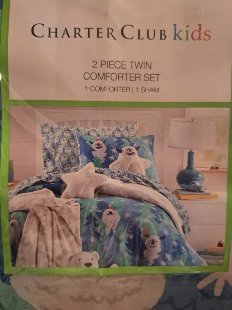 This Charter Club Kids 2 Piece Twin Snow Man Themed Comforter Set features a winter theme with a multicolor design. The set includes a comforter and pillow sham, both made of polyester fill material. It is designed for children and has a contemporary style, perfect for adding a holiday touch to a bedroom.