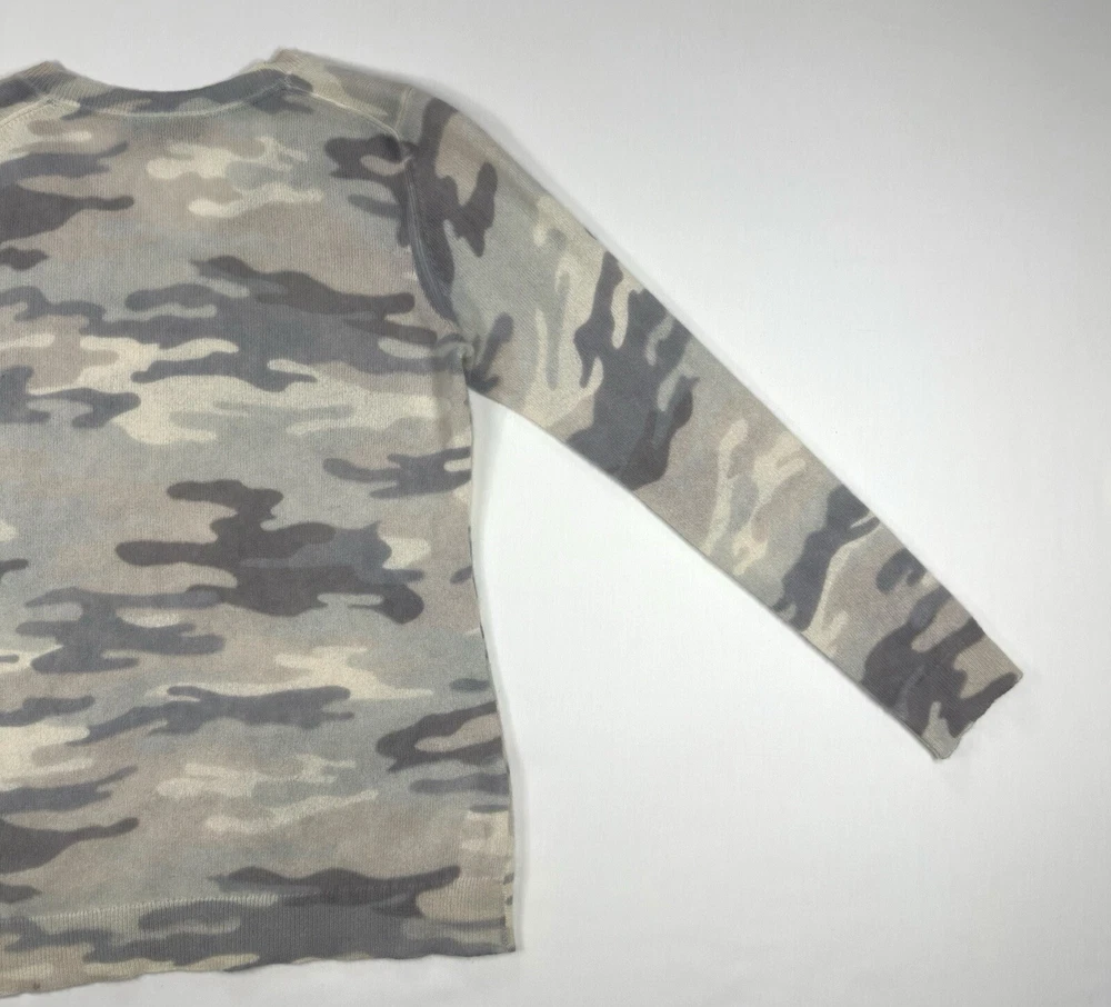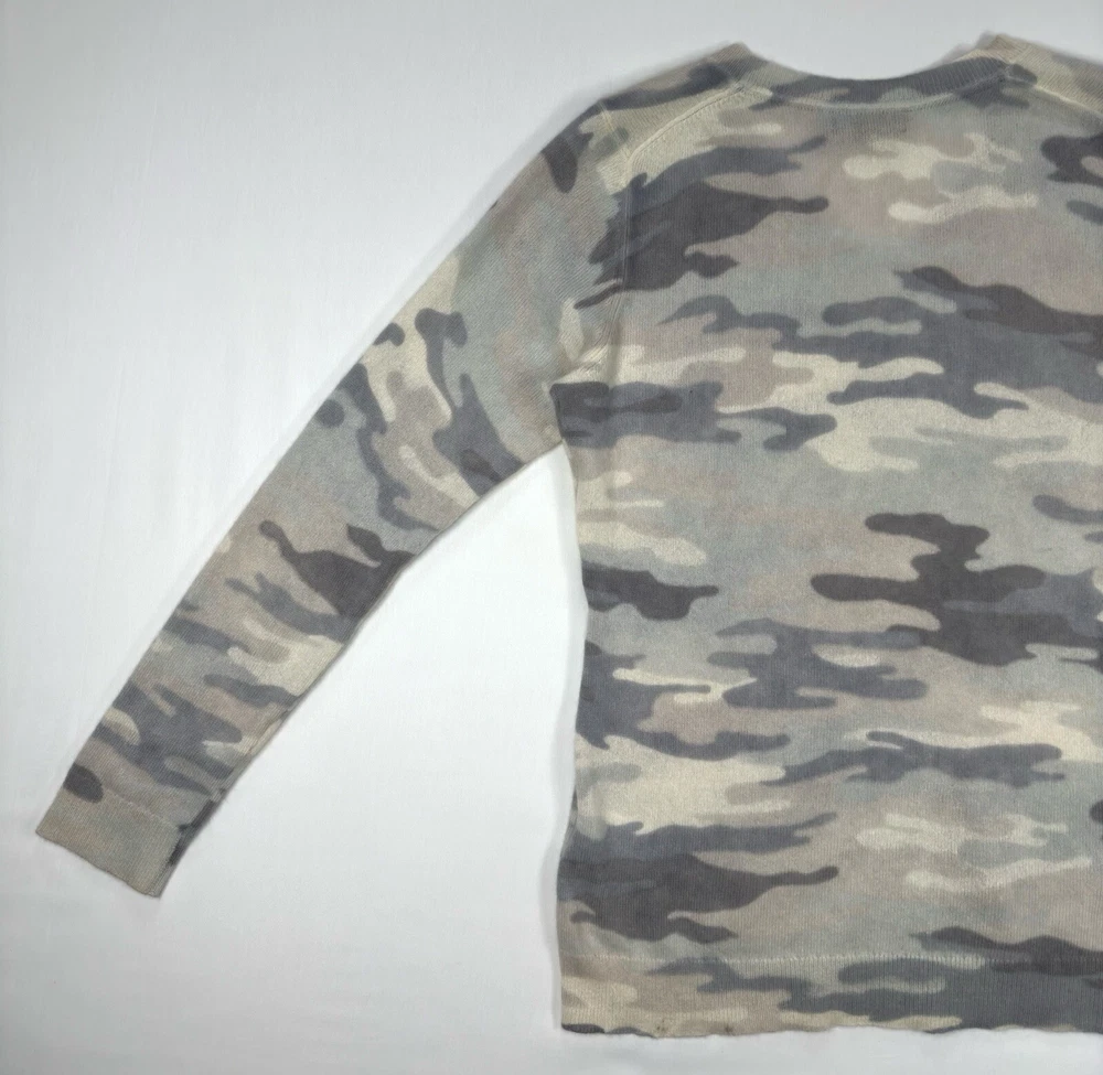 Charter Club Luxury 100% Cashmere Light Grey Camouflage Pullover Vneck Large