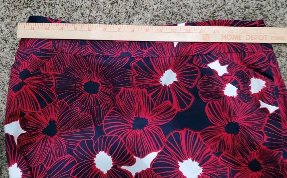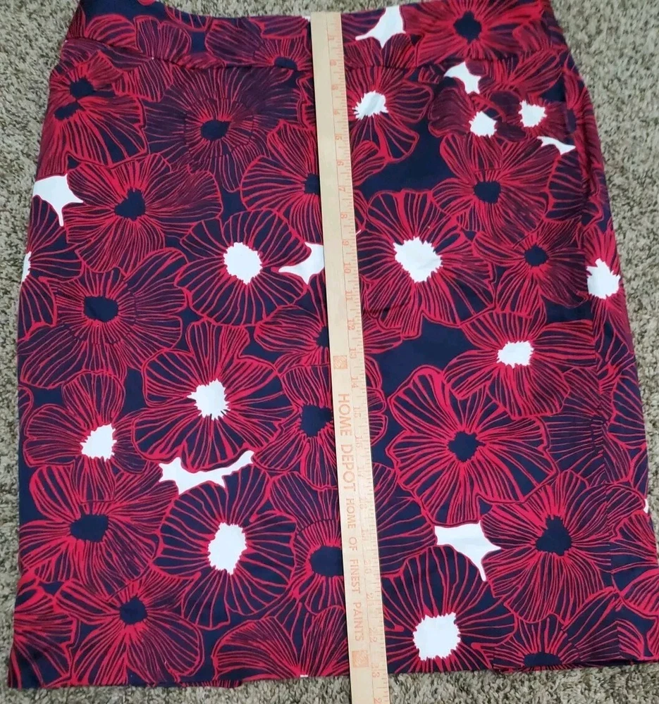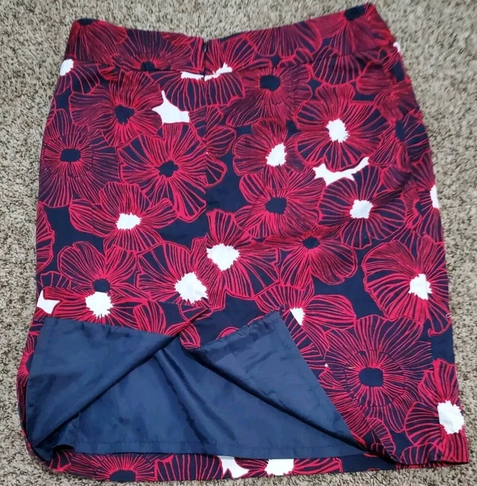 Charter Club Pencil Skirt Women's Size 14 Denim Tummy Control Blue Pink Flowers