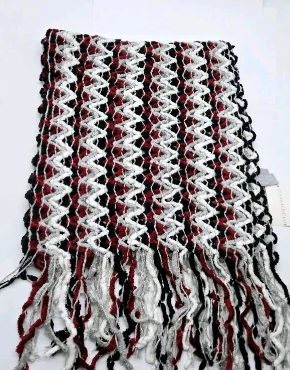 NEW Charter Club Cherry Super Soft Chenille Zigzag Weave Fringed Women's Scarf NWT Timeless and Stylish Design Makes a Great Gift! Features Loose Knit ZigZag Pattern with Metallic Detail Charter Club is a Private Label of Macy's New with Tags - Retail $42.00 Scarf Measures Approximately 12" x 64"Fringe at Ends 98% Acrylic, 2% Other Fiber; machine wash cold Disclaimer: Product color may vary slightly due to your monitor settings.