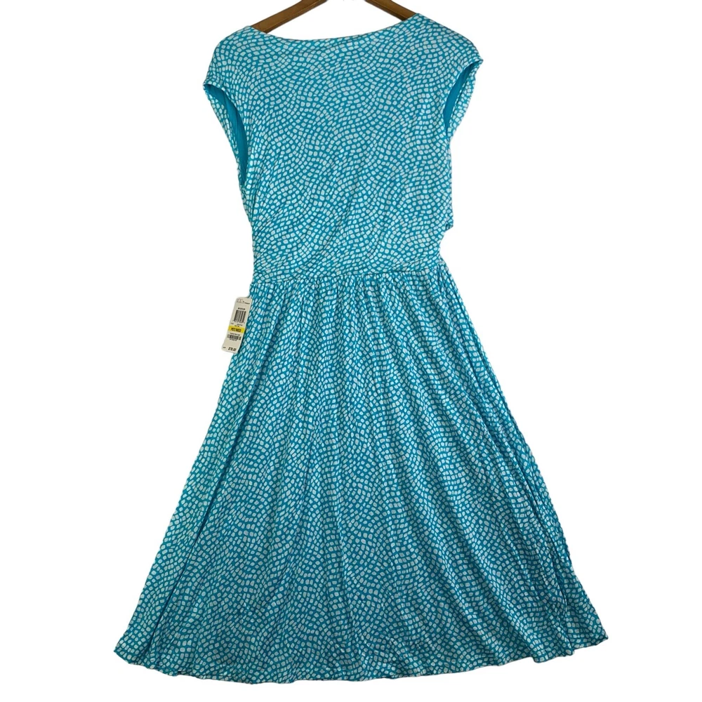 This beautiful Charter Club dress is perfect for any occasion, whether it's a wedding, holy communion, party, casual or formal event, or even for work or business. The dress comes in a stunning Rio de Flor Aqua Teal color with a V-neckline and a sleeveless design. It features a layered lace fabric with a zip closure and a knee-length fit and flare style. The dress is made of 100% polyester and is machine washable for easy care. It also has some great features like being lightweight and lined for added comfort. This dress is perfect for any fashionista who loves classic designer styles and wants to look their best!