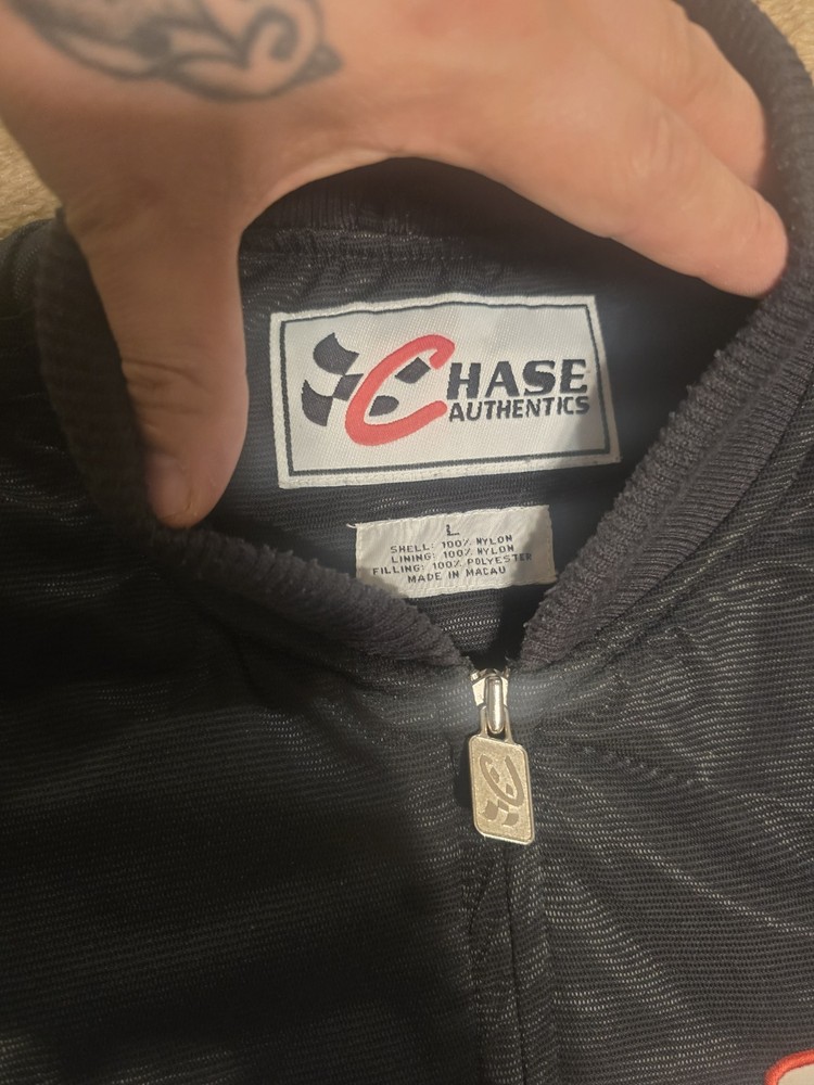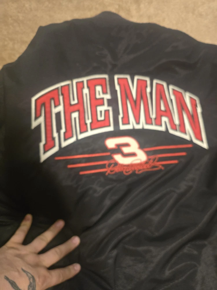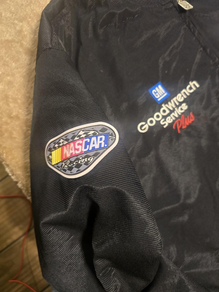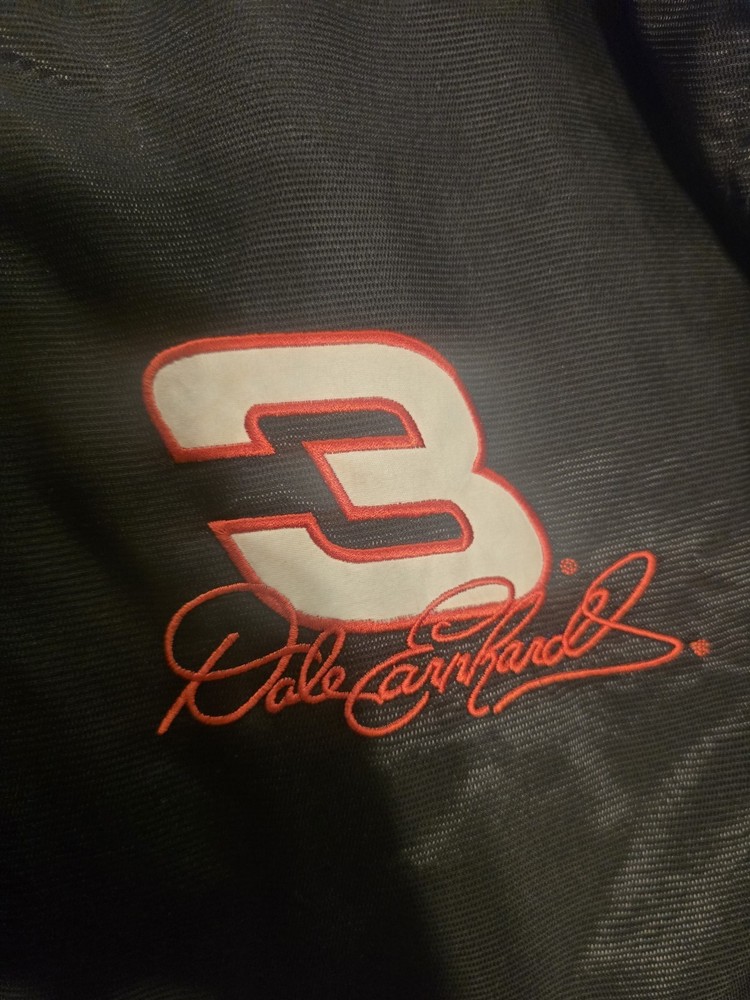 The Chase Authentics Dale Earnhardt Goodwrench NASCAR Racing Jacket in size L is an officially licensed product featuring the iconic driver Dale Earnhardt. This black jacket is a must-have for men who are fans of auto racing, specifically NASCAR. Representing Richard Childress Racing, this jacket is the perfect addition to any racing enthusiast's wardrobe. Hardly worn. rare find in this condition. size large but runs on the husky side.