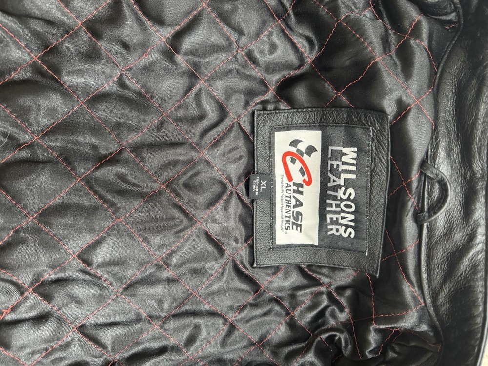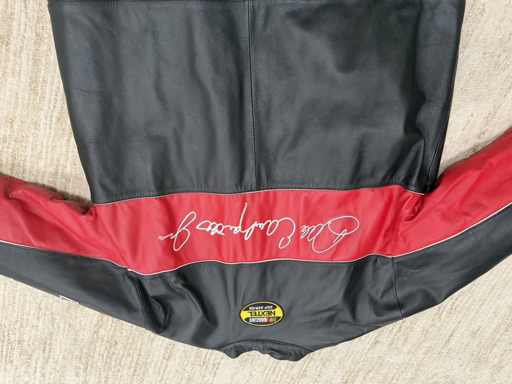 The Chase Authentics Dale Earnhardt Jr. Wilsons Leather Jacket in XL is an officially licensed NASCAR fan apparel featuring the signature black and red colors of Dale Earnhardt Jr.'s car. This jacket is designed for unisex adults and is an essential piece for fans of the Earnhardt Ganassi Racing team. Made with high-quality materials, this jacket showcases the driver's association with NASCAR and is a must-have for any racing enthusiast looking to support Dale Earnhardt Jr. in style.